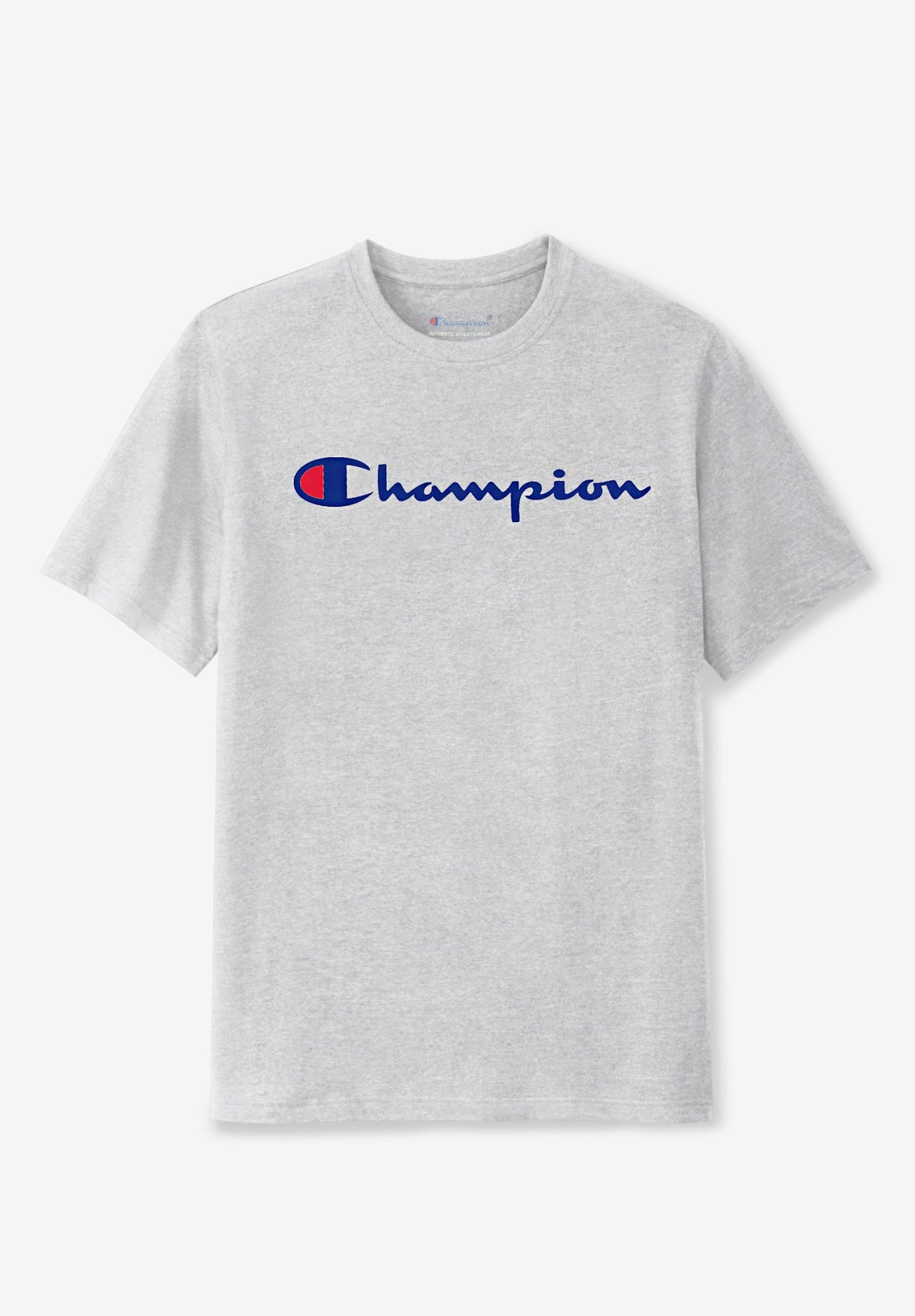 Get up and go in the Champion® Script Logo T-shirt! The big and tall short sleeve shirt is a casual, everyday option with plenty of room to move in. Versatile and easy to wear, this tee can be paired with jeans for going out or with sweats when you want to stay in. It's up to you how you wear and enjoy this relaxed fit big and tall Champion® t-shirt!