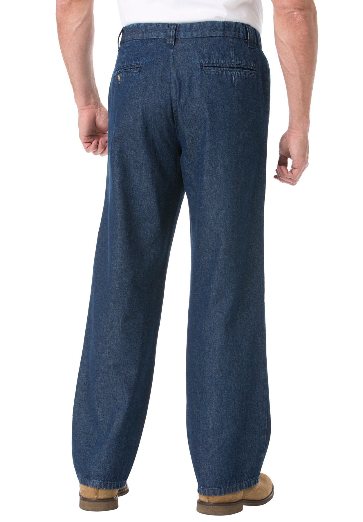 Our Relaxed Fit Comfort Waist Pleat-Front Expandable Jeans have the look of classic denim with the all the comfort of your favorite sweatpants. Hidden elastic side panels expand up to 2" and give you extra room to move.