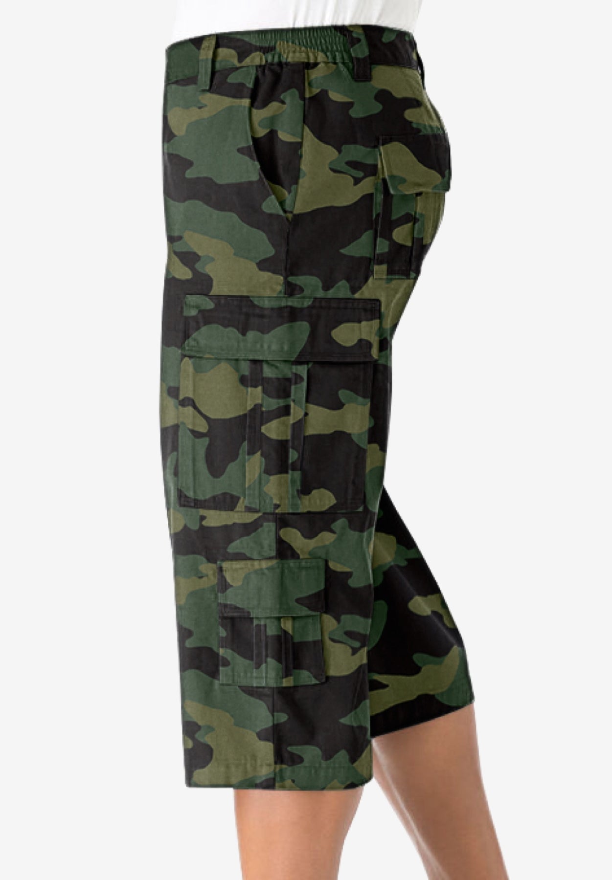 17” Side Elastic Cargo Shorts with side elastic waistband. Stacked cargo pockets made with hidden adjustable self adhesive tabs and two back pockets, combining comfort and functionality.