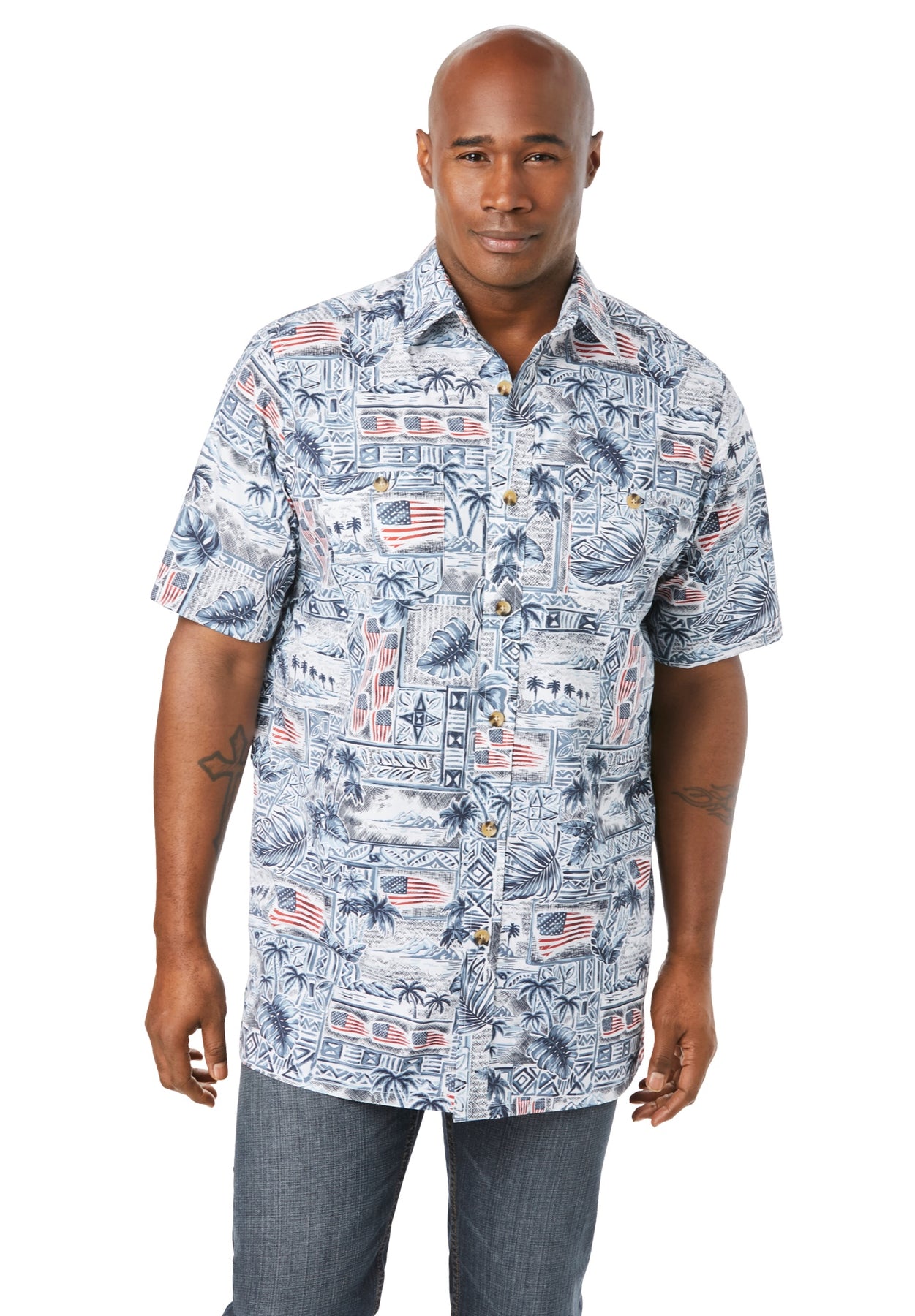 Celebrate the 4th of July and all-year-round in our breathable Americana Shirt. This shirt has a relaxed fit and is made from a breathable cotton blend for style and comfort all summer long.