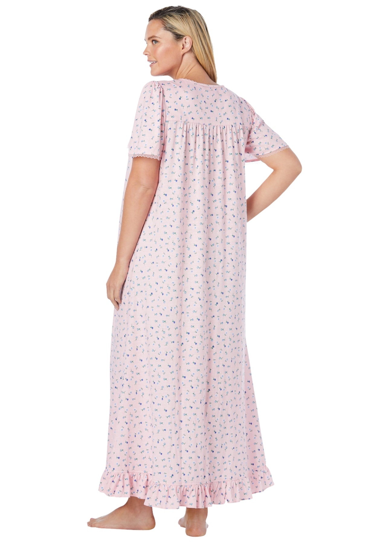 - Enjoy cozy nights and relaxed mornings in this charming long floral print cotton gown.