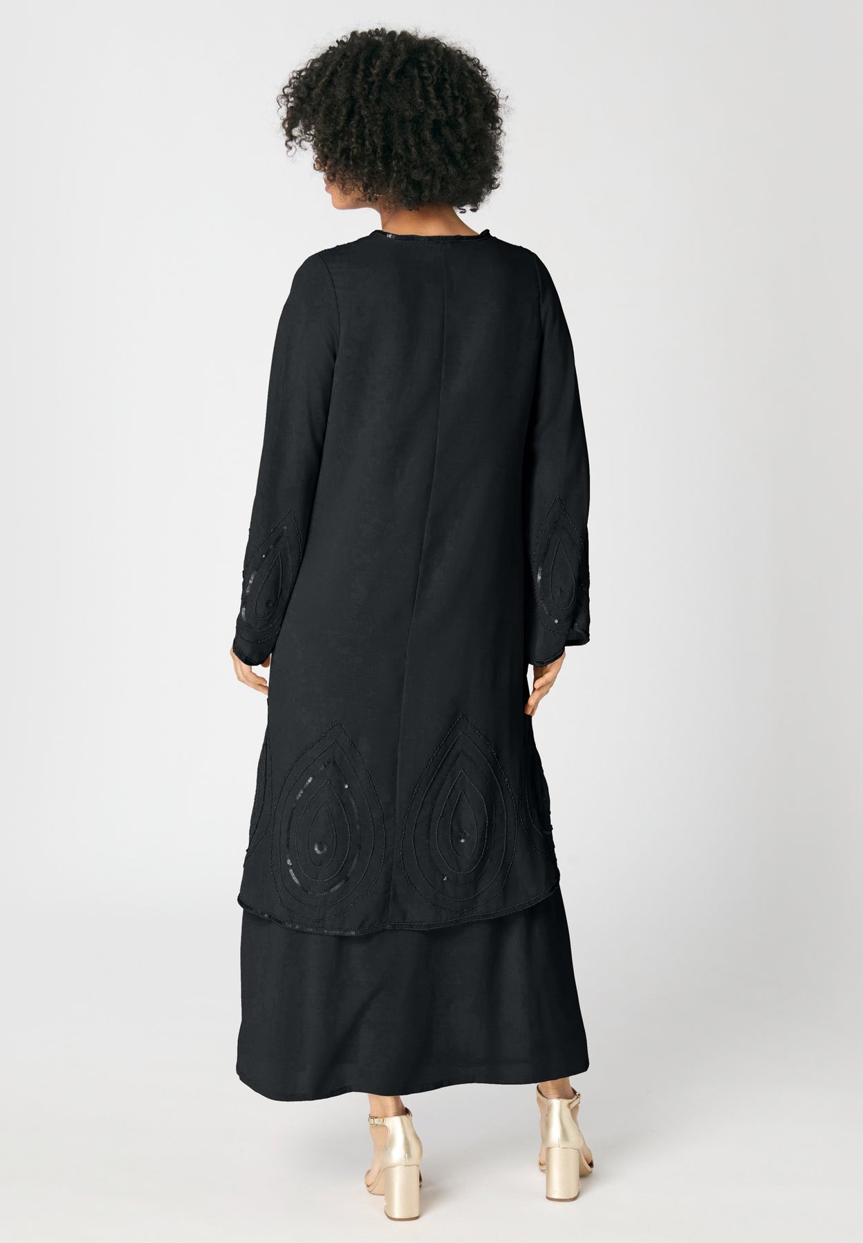 Elevate your elegance with this beaded set, featuring a flattering scoop neckline and a detachable open front beaded jacket. Crafted from luxurious georgette fabric, the gown combines sophistication and versatility for your next special occasion.
