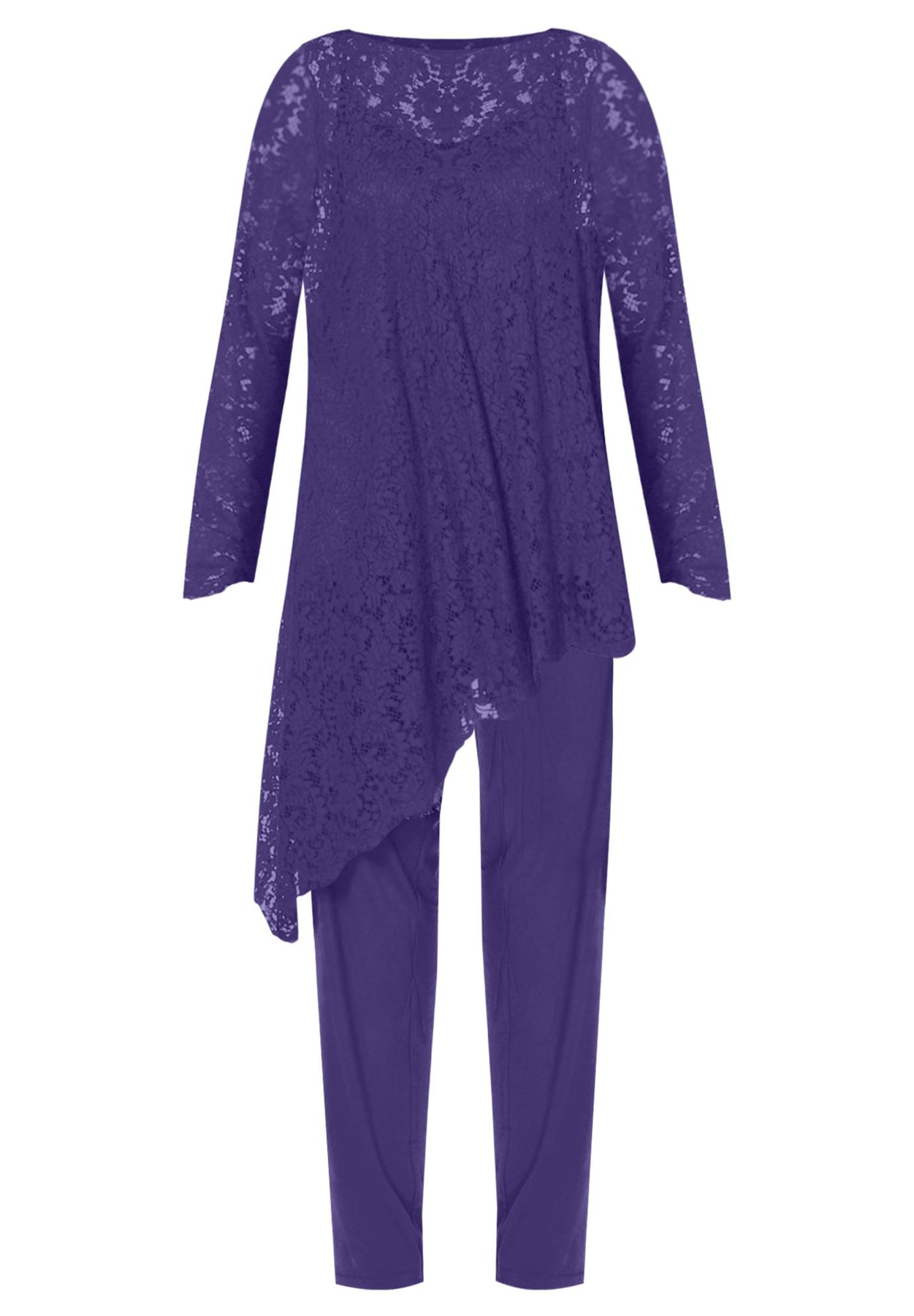 Plus-Size Asymmetrical Lace Pant Set –Long Sleeve Lace Scalloped Tunic & Elastic Waist Pants | Roaman&