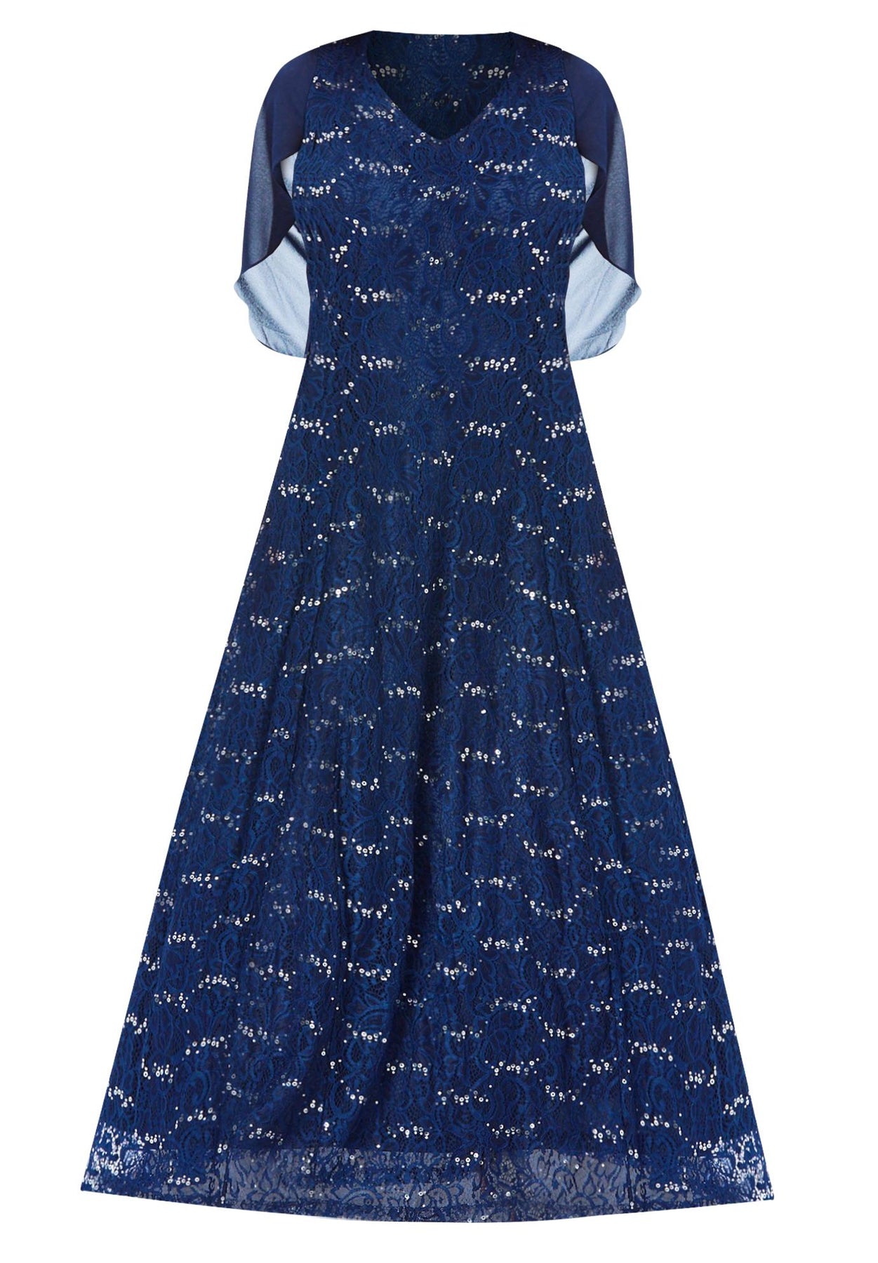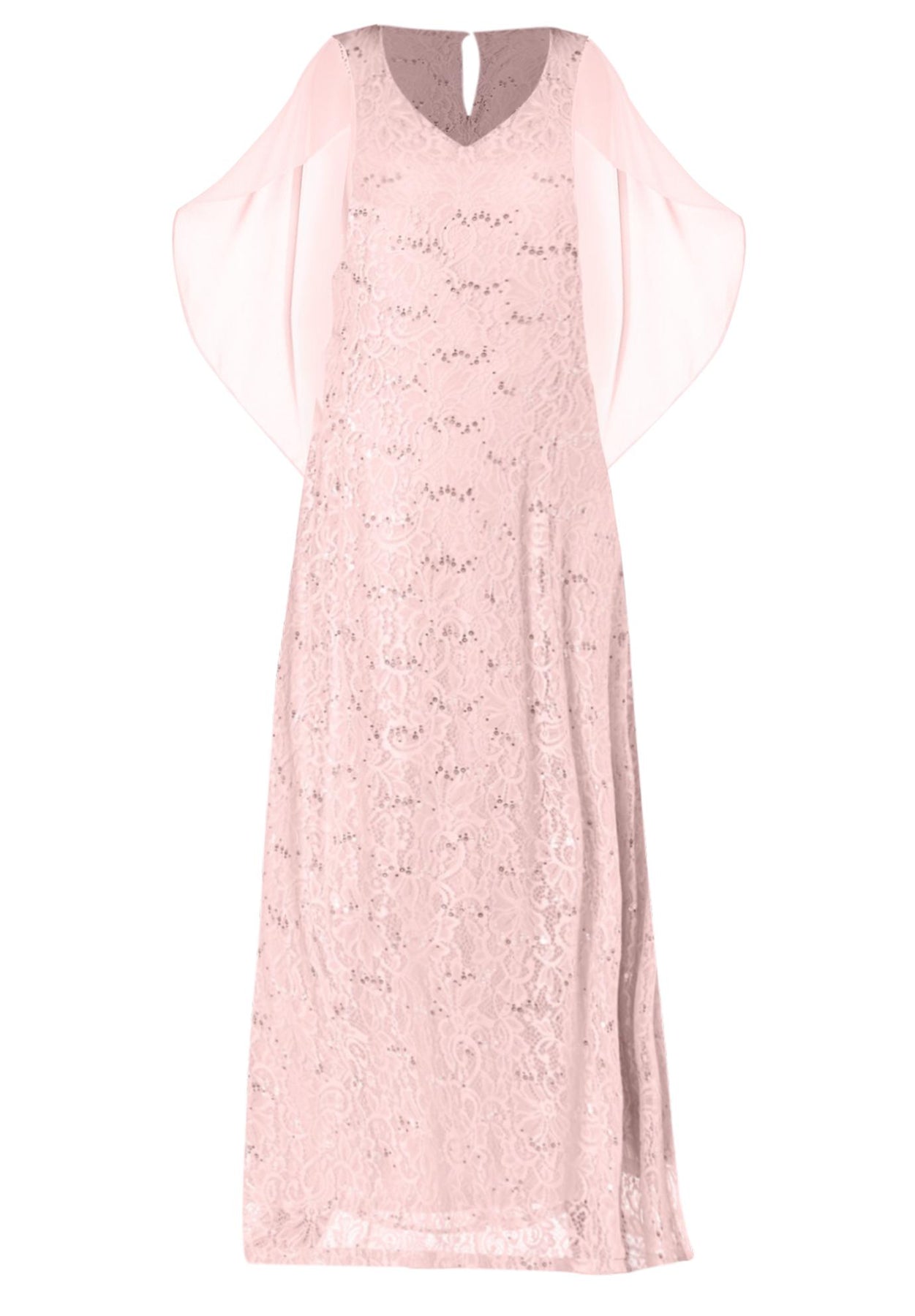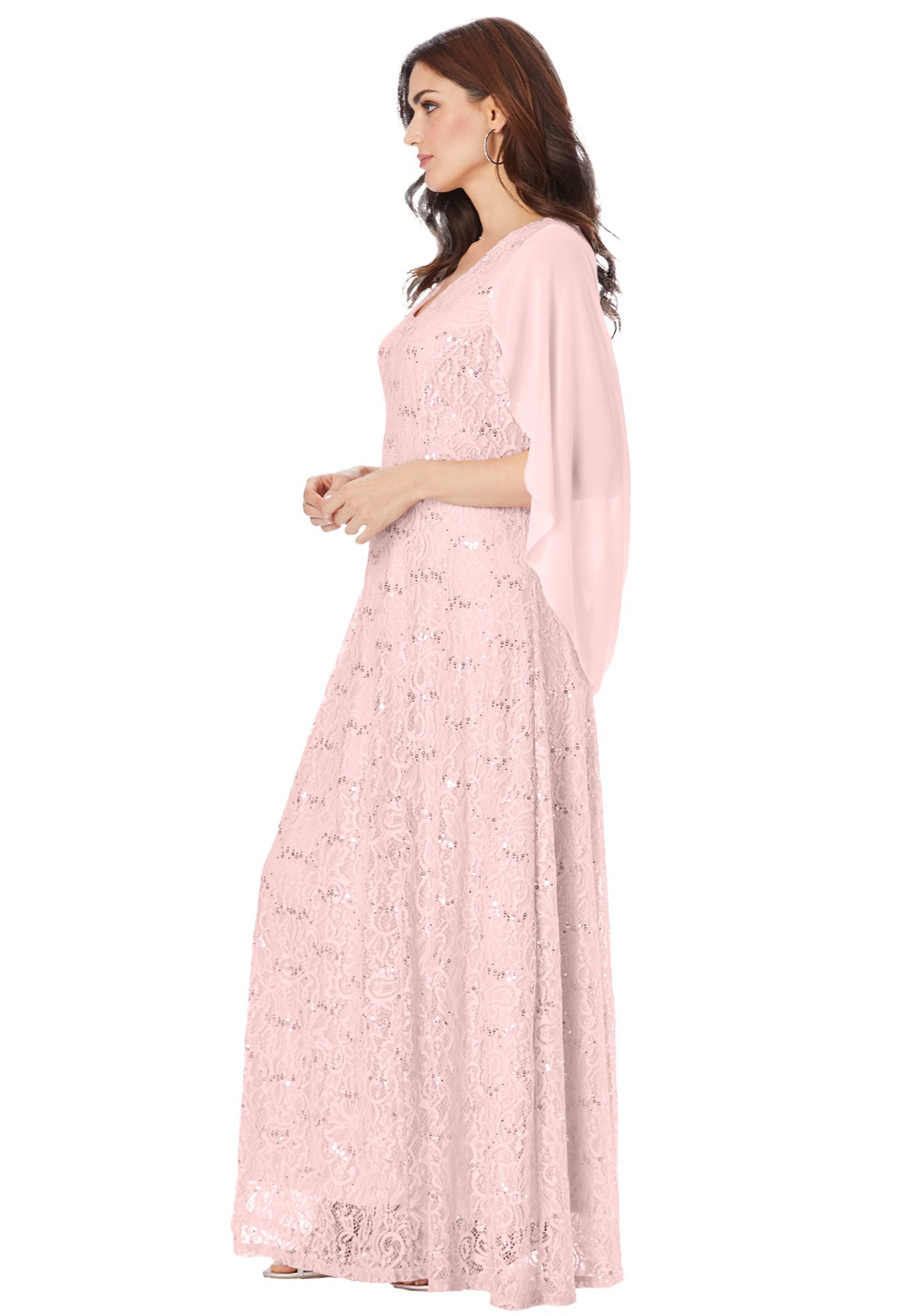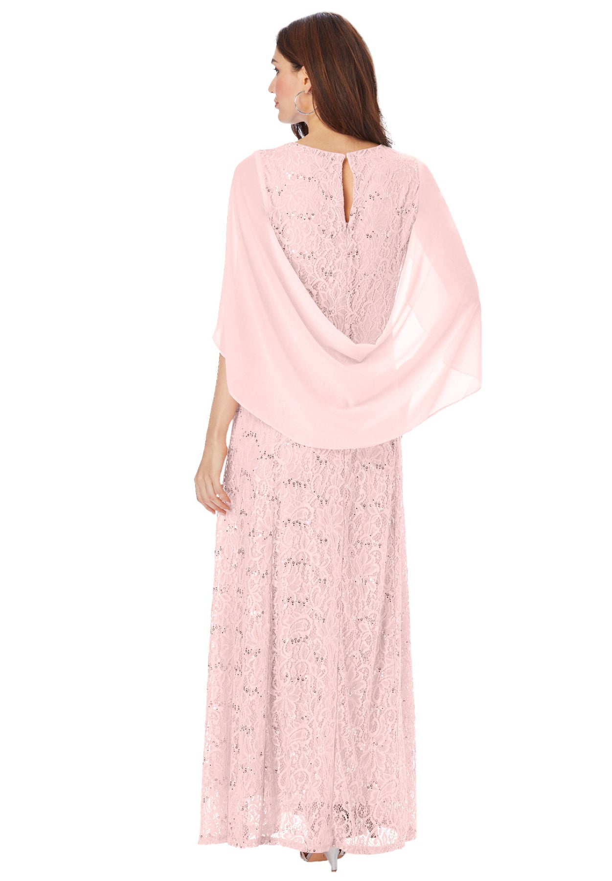 Plus-Size Allover Lace Gown with Capelet