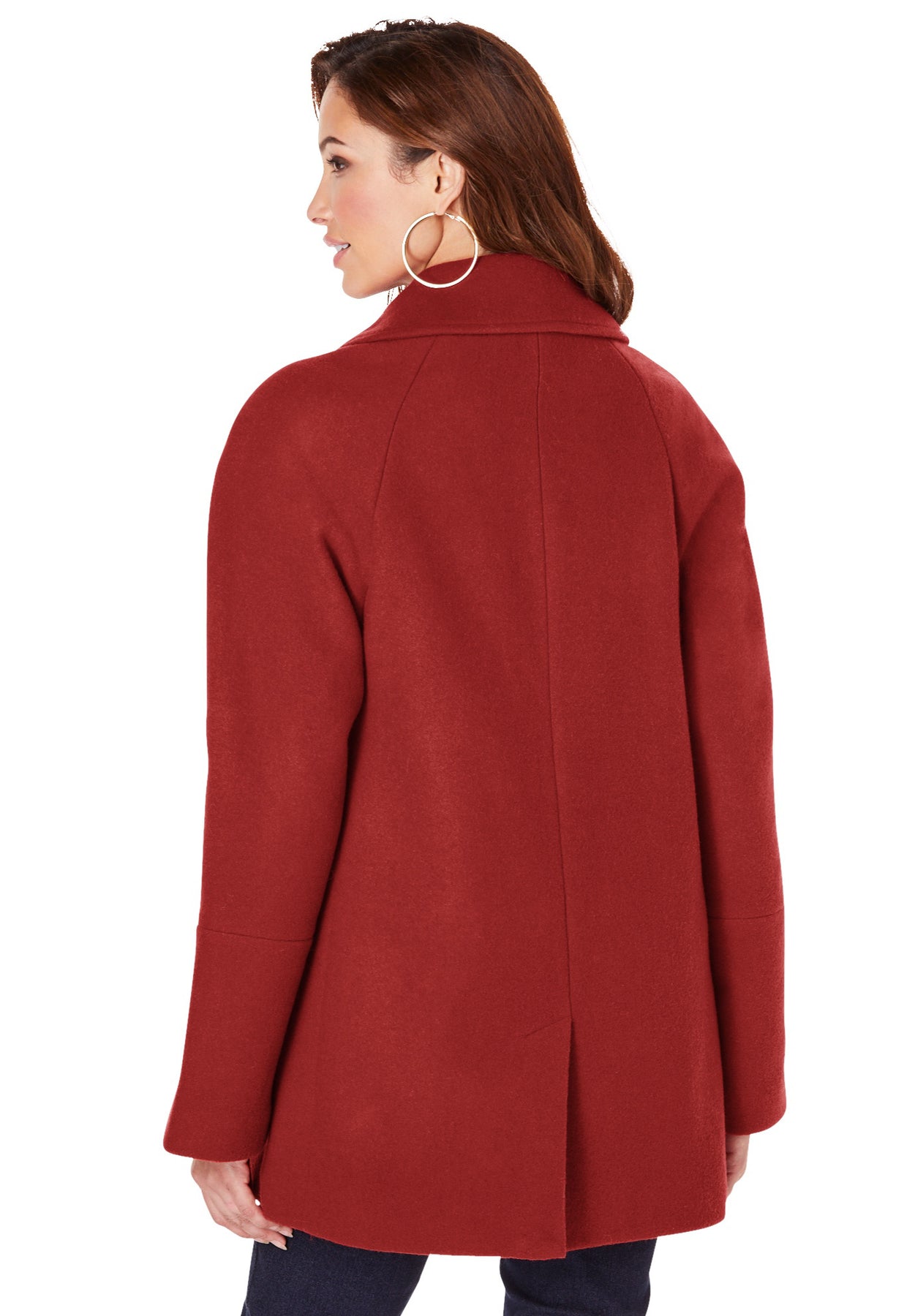 The classic peacoat gets a swingy new update with a lovely straight silhouette, perfect for wearing over sweaters and other layers. The wide raglan sleeves and large buttons give it a modern look, too. Lined.