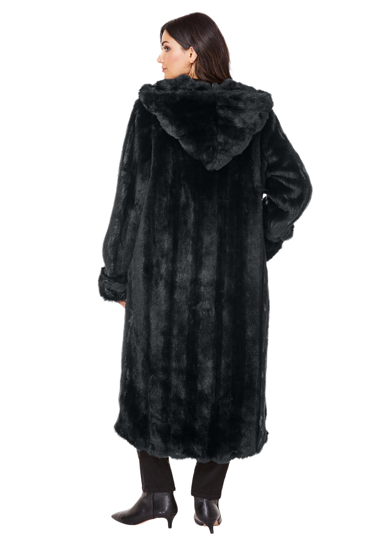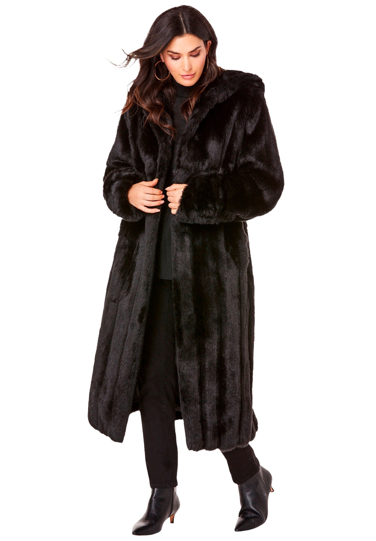 Plus Size Hooded Faux Fur Coat | Roaman&