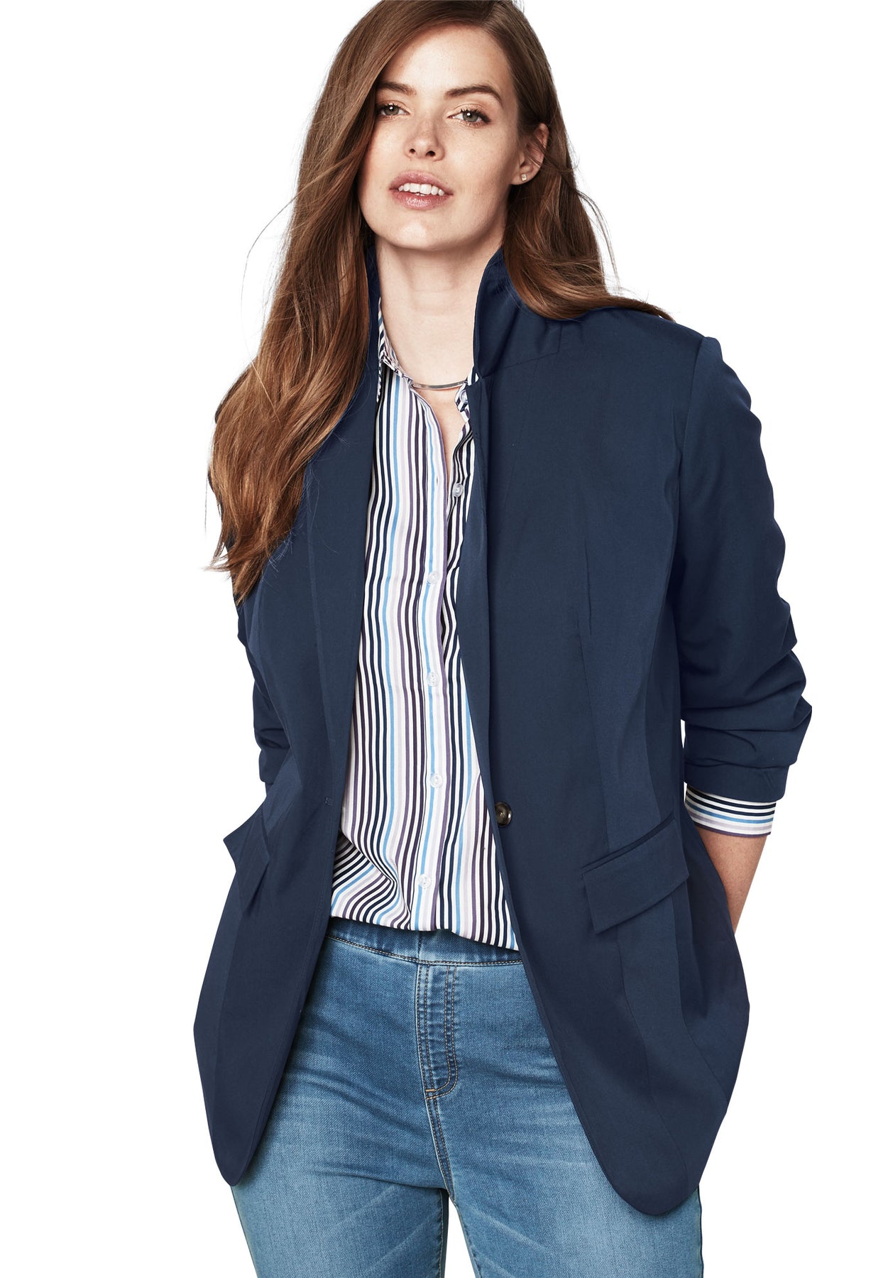 Our best-selling blazer for a reason! Now with a looser, more relaxed style tailored for a still-flattering fit, with a single button front, front pockets and back vent. Lined.