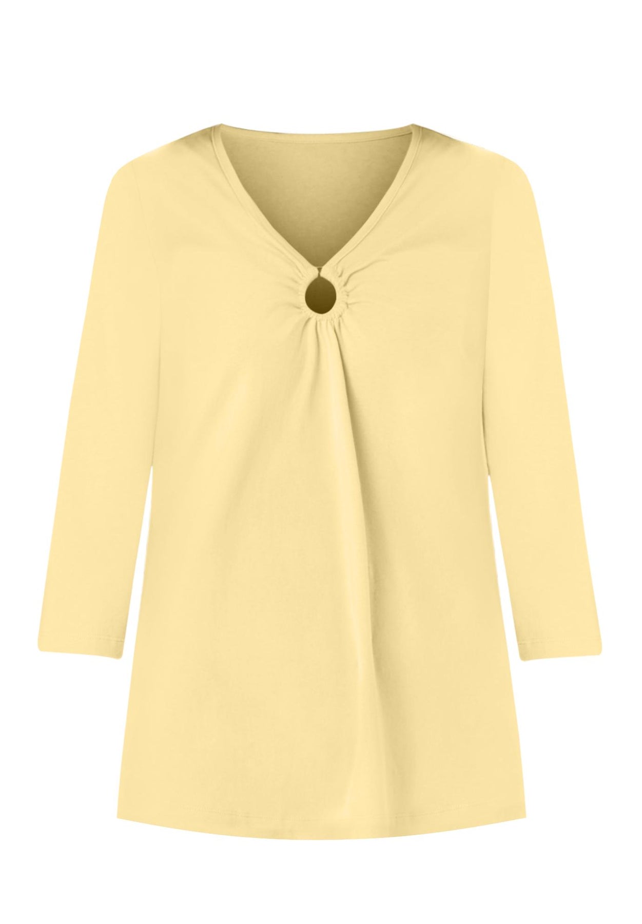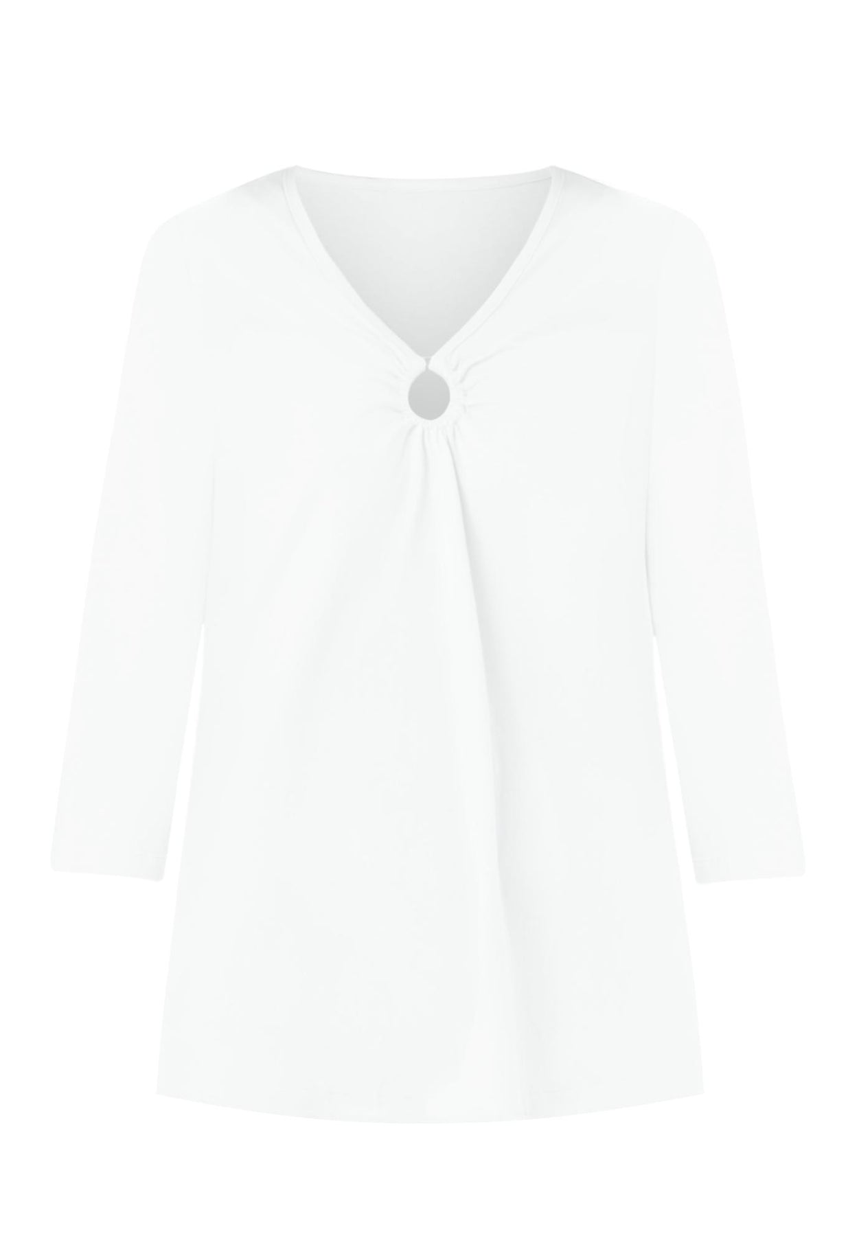 A tortoise ring detail at the front of this V-neck style elevates it among the rest with three-quarter sleeves in a so-soft fabric.