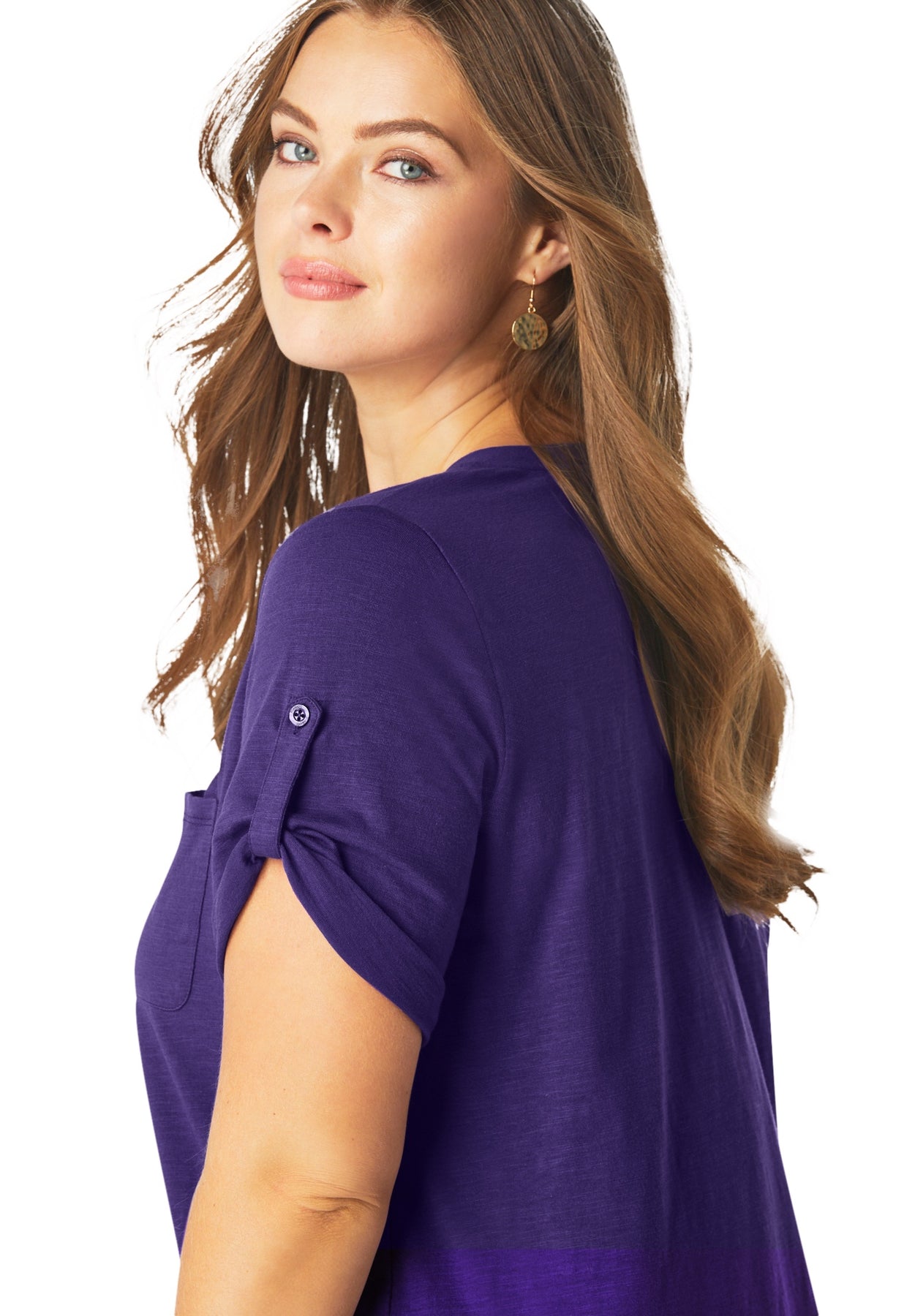 One of our best-selling tunics is back in stock—featuring the same great, relaxed style in an easy textured knit. Adjustable roll-tab sleeves. Chest pocket. High-low hem.
