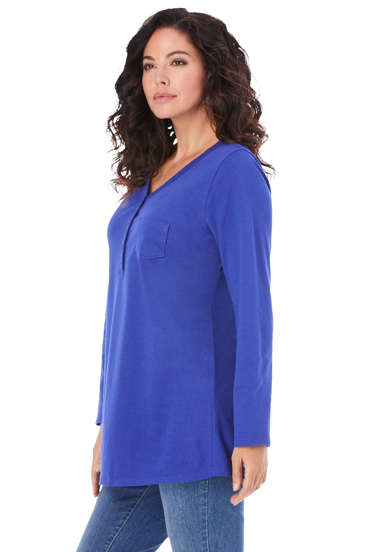 Ultimate Long Sleeve Henley Tee with Sweetheart Neck | Roaman&