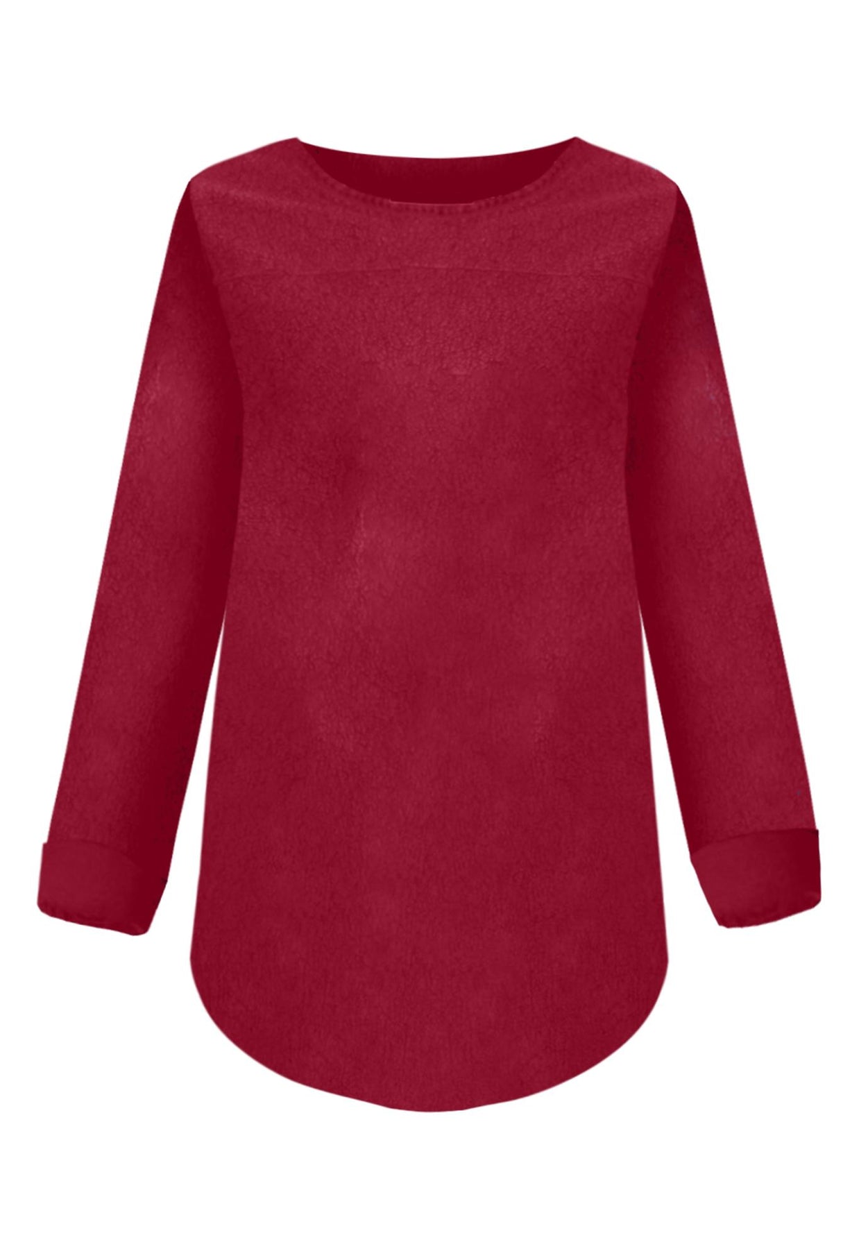 This supersoft and cozy tunic is one you'll reach for all season. Detailed with feminine touches like a ruffled neckline and cuffs.
