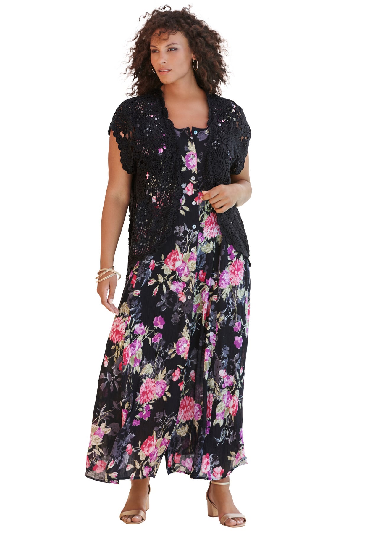 Plus Size Scallop Trim Crochet Cardigan Sweater | Roaman&