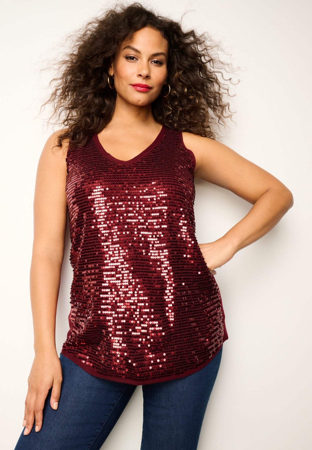 When in doubt, bring your sparkle out! Embellished with eye-catching sequins down the front, this tank does just the trick. Bra-friendly thanks to its thick straps, you can easily wear this solo during warm months or layer it under a sweater during the colder ones.