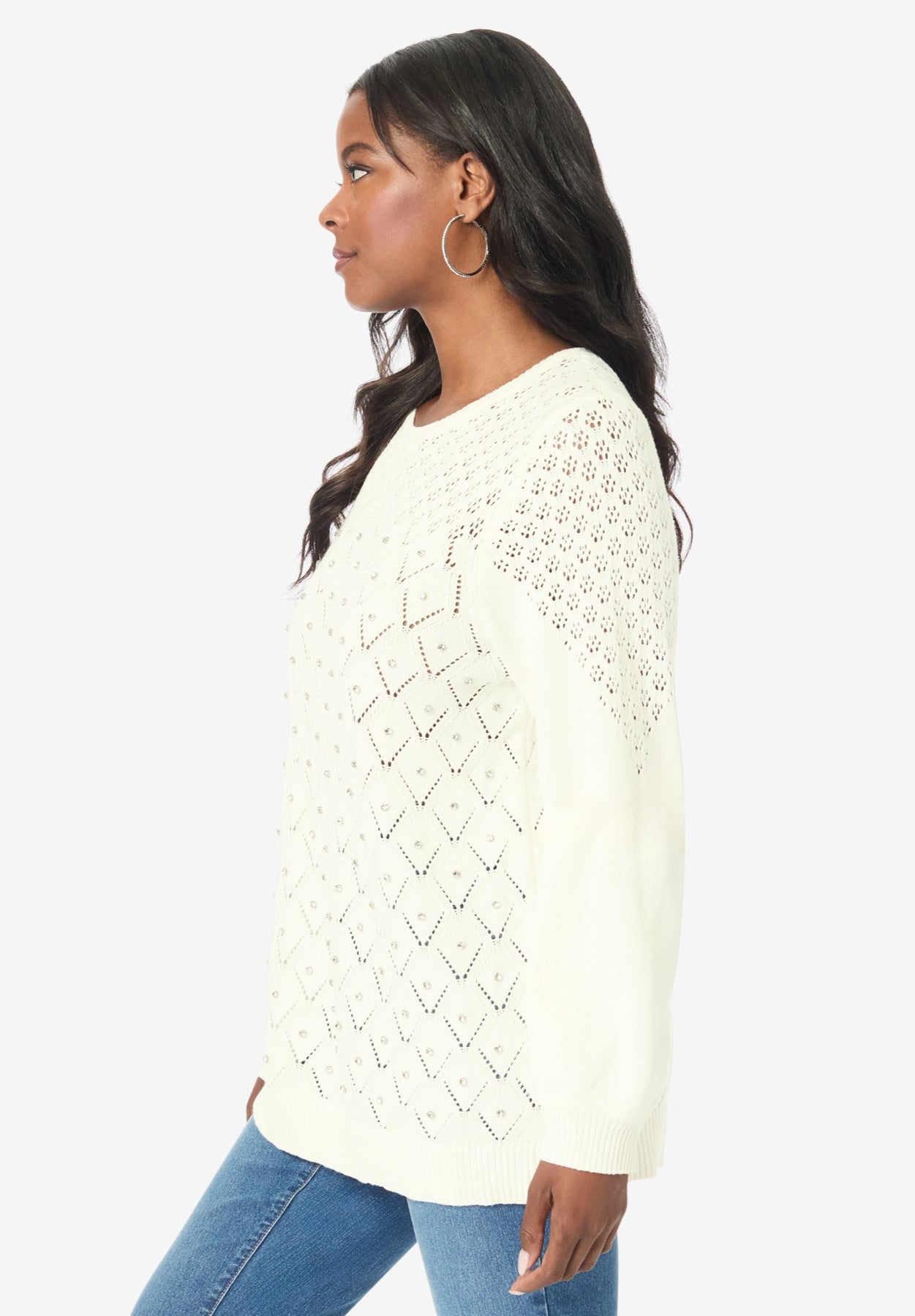 Rhinestone Pointelle Knit Sweater