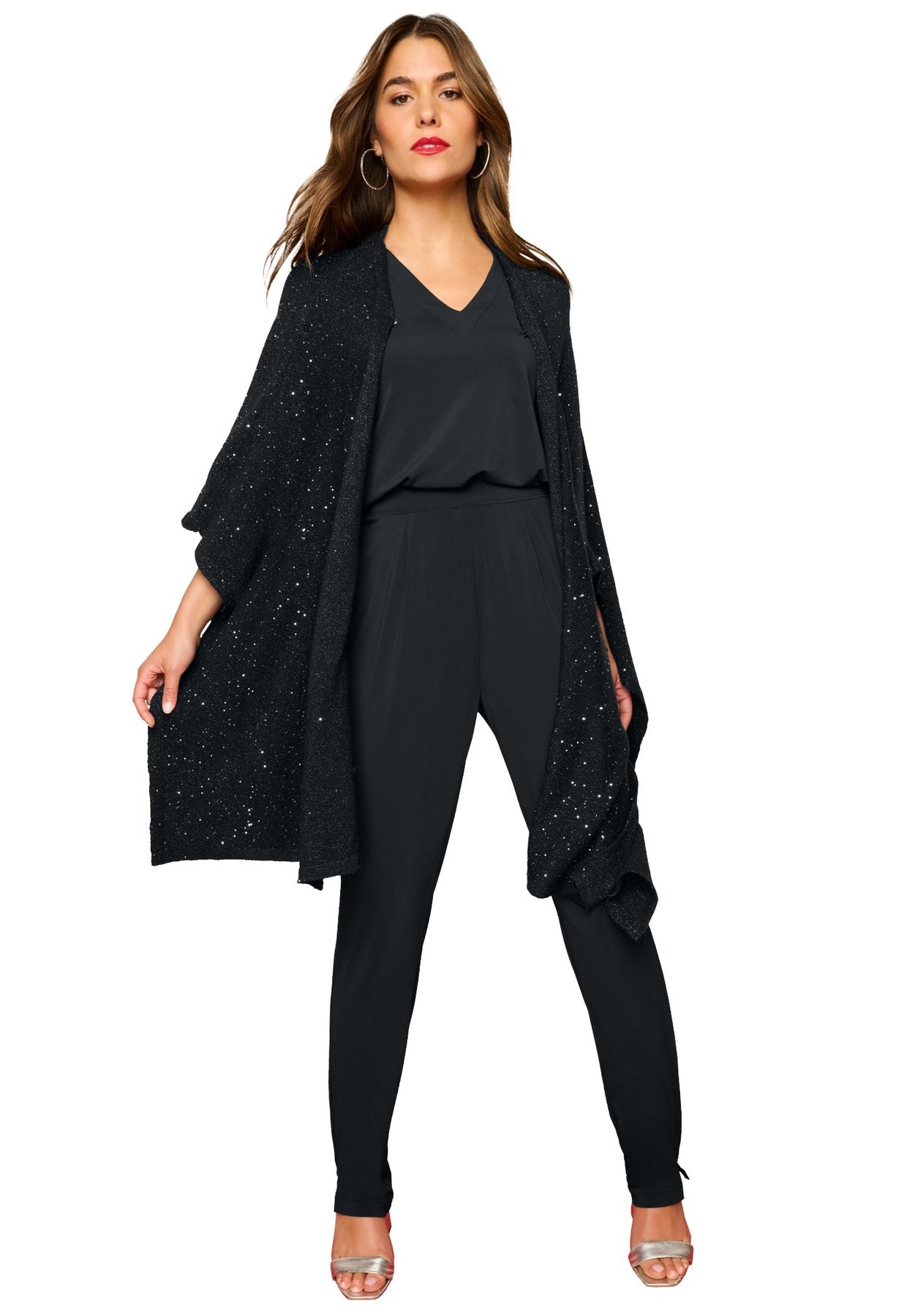Add instant shine to any outfit with this statement-making poncho, crafted from soft, sequined threads for lightweight comfort and sparkle. Its open-front ruana shape and relaxed fit make layering effortless, perfect for those special evenings out. Throw it over an understated dress, or top off with a crisp blouse and jeans to turn up the glam with zero effort.