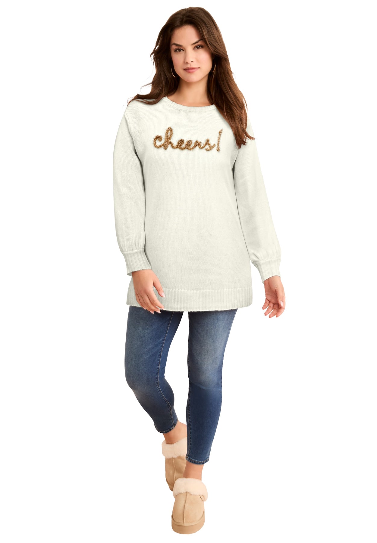 Greet the festive season with this embroidered sweater—playful, polished, and perfect for dressing up your day. Its relaxed fit, blouson sleeves, and ribbed boatneck blend ease with a hint of metallic sparkle. Style this pullover sweater with sleek black pants or a midi skirt to let the metallic detail steal the spotlight. Ribbed cuffs and hem. Straight hem.