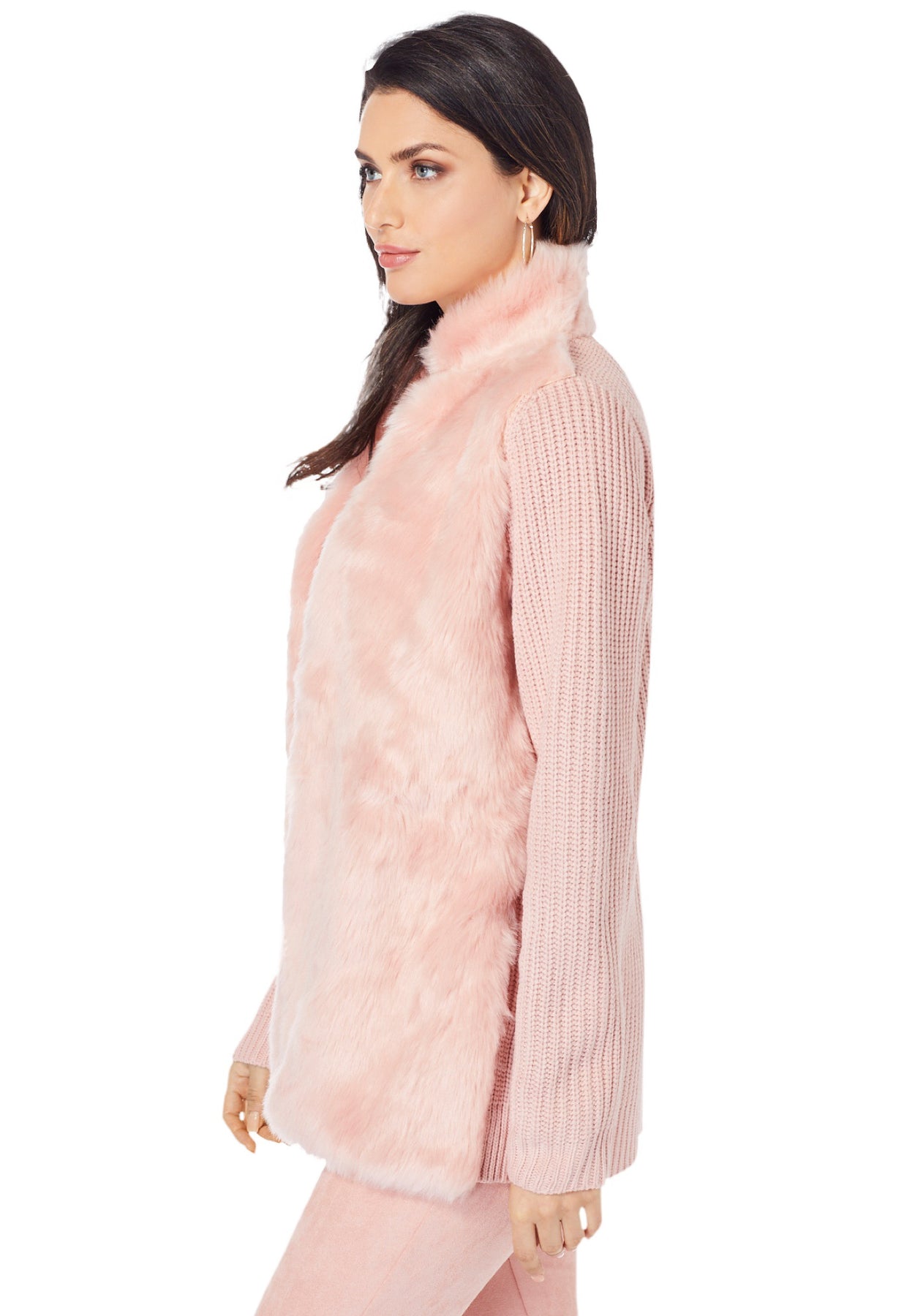 A seriously glamorous sweater, this rib knit cardigan gets a layer of luxe with a faux-fur front. Open front. Rib knit back and sleeves.