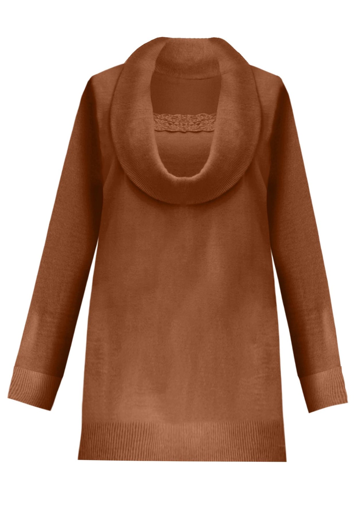 Plus Size Lightweight Cowl Neck Sweater with Lace Trim | Roaman&