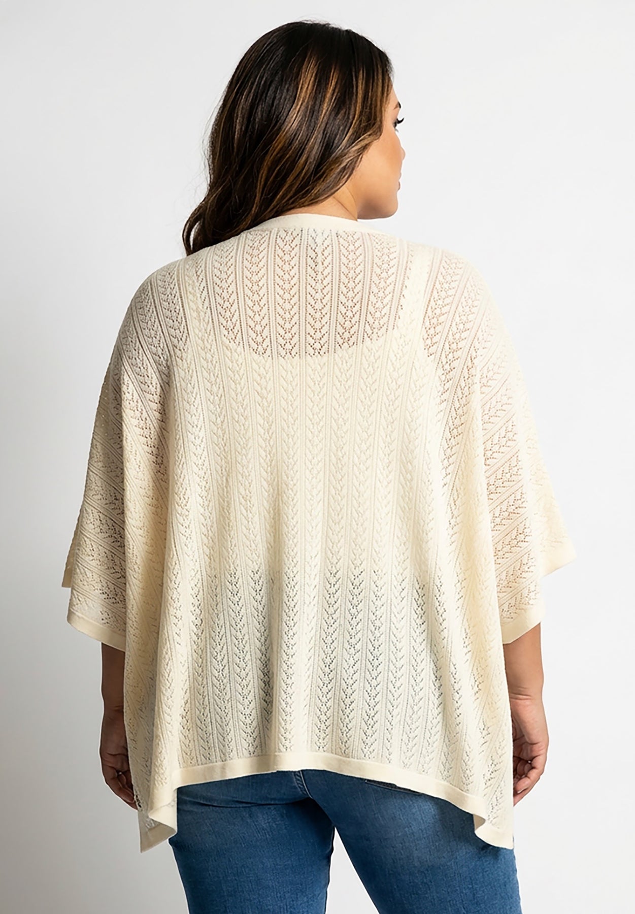 Plus Size Pointelle Open-Front Ruana Cardigan