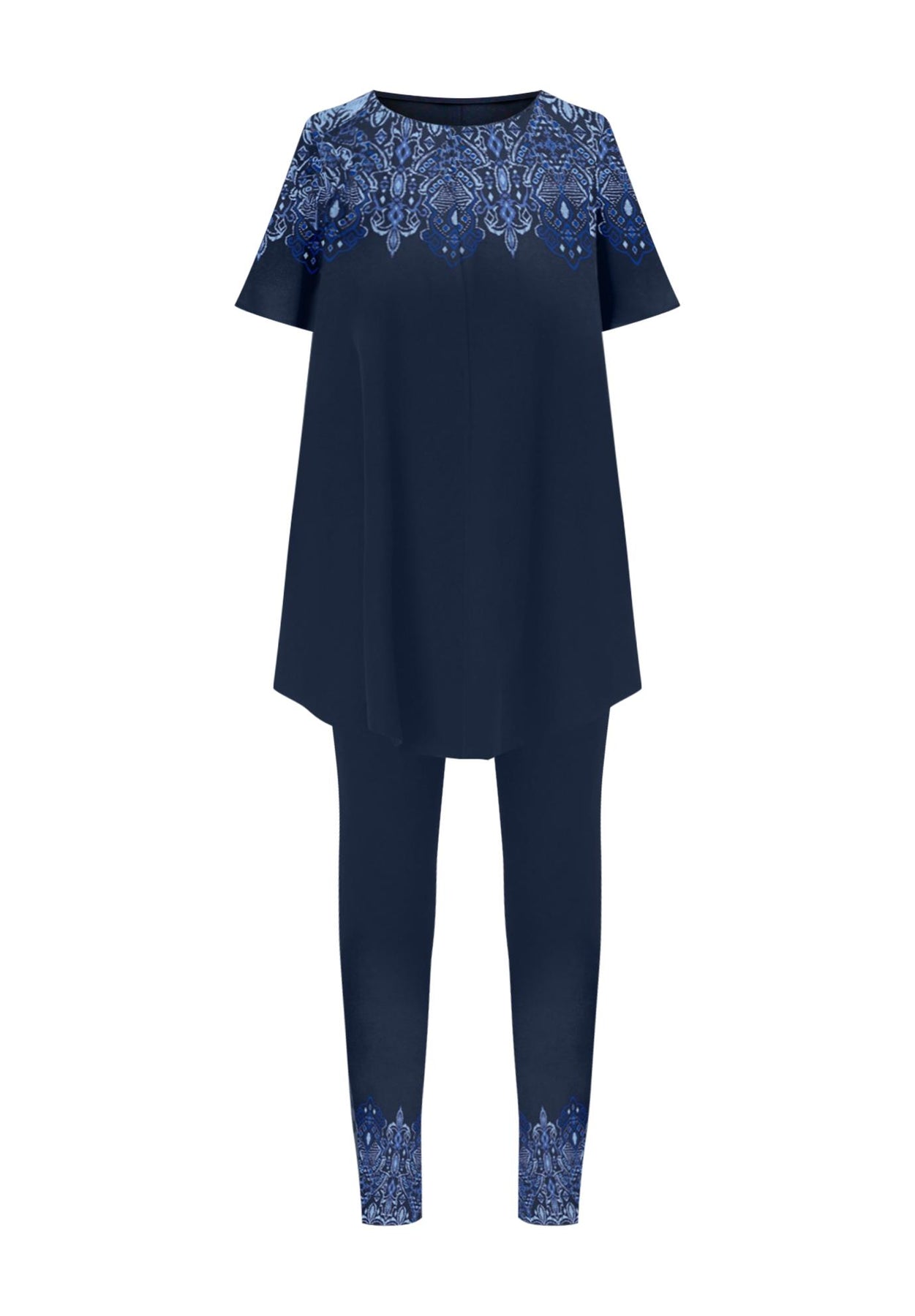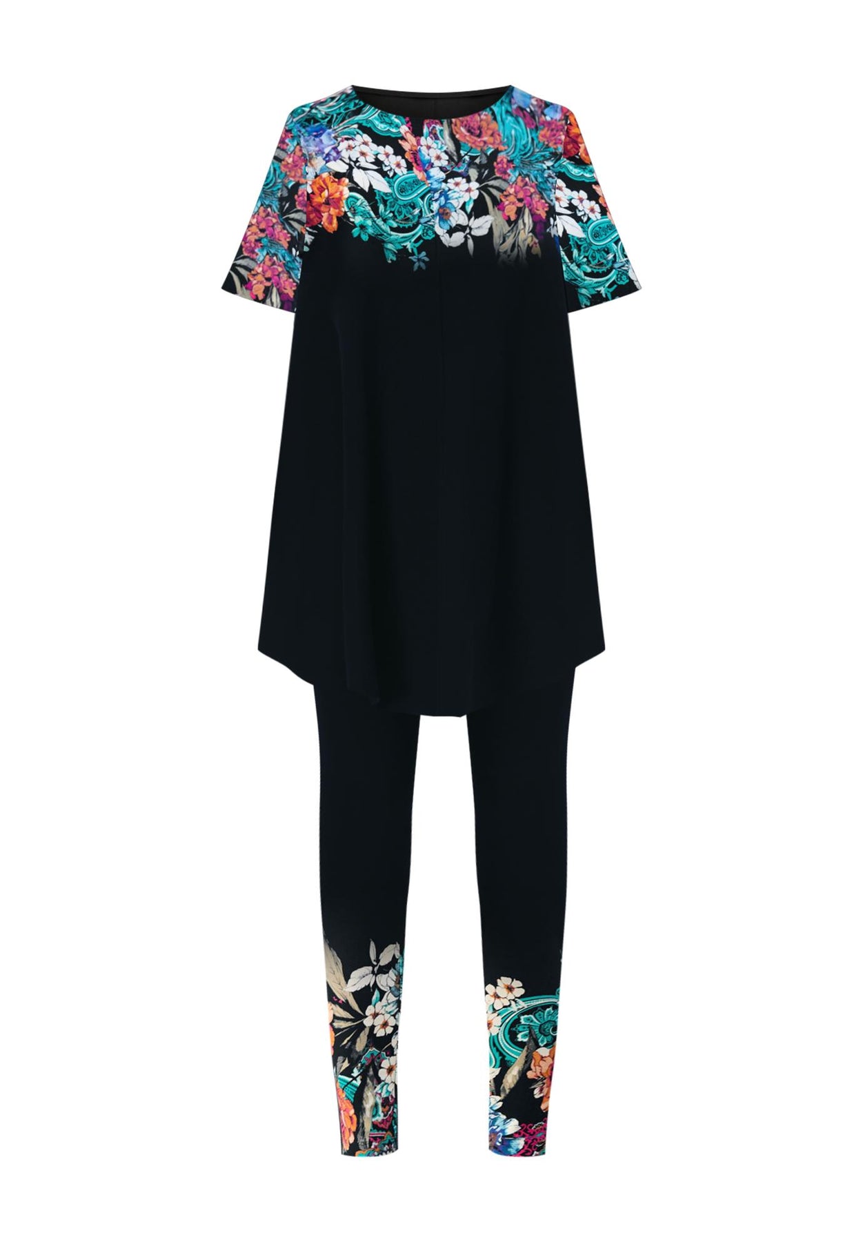 A well-rounded feminine look starts here. The soft tunic features placement-print detail at the boat neckline with a figure-loving fit-and-flare silhouette and center seams. Elasticized pull-on legging with placement print detail at hem.