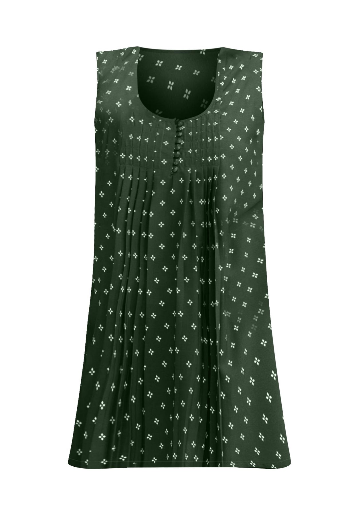 This swingy top is perfect for warm weather, or under a cute cardi on cooler days. Scoop neckline with pleated button-front. A-line silhouette.