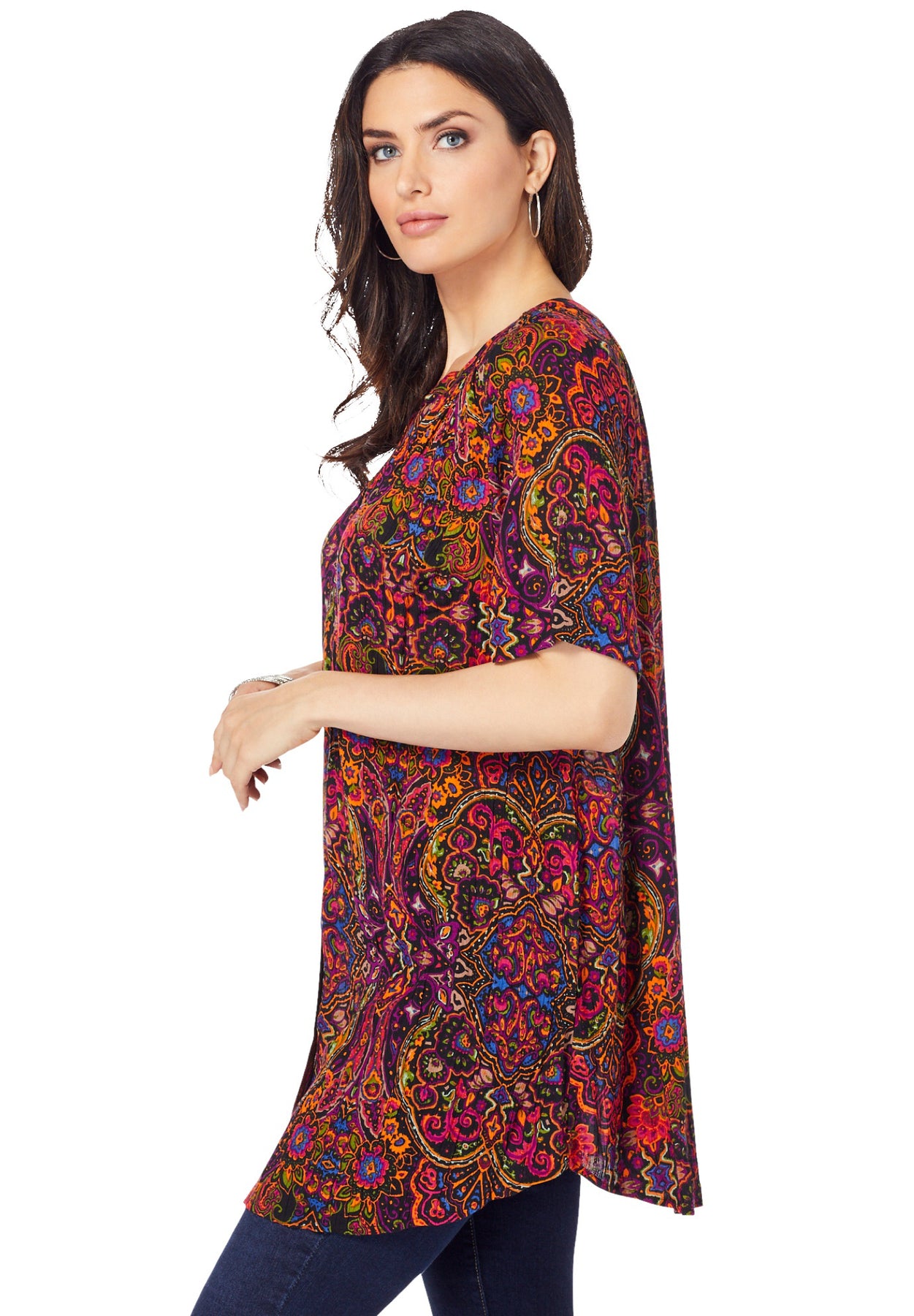 Plus Size Angelina Tunic Top – Short Sleeve, Flowy Fit, Everyday Comfort | Roaman&