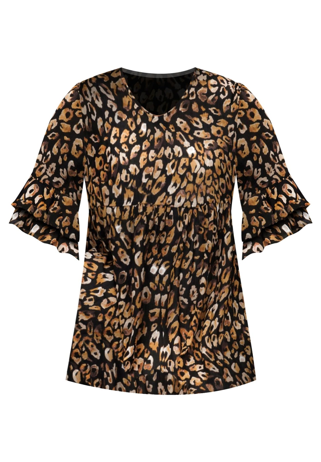 Ruffled Elbow-Sleeve Tunic