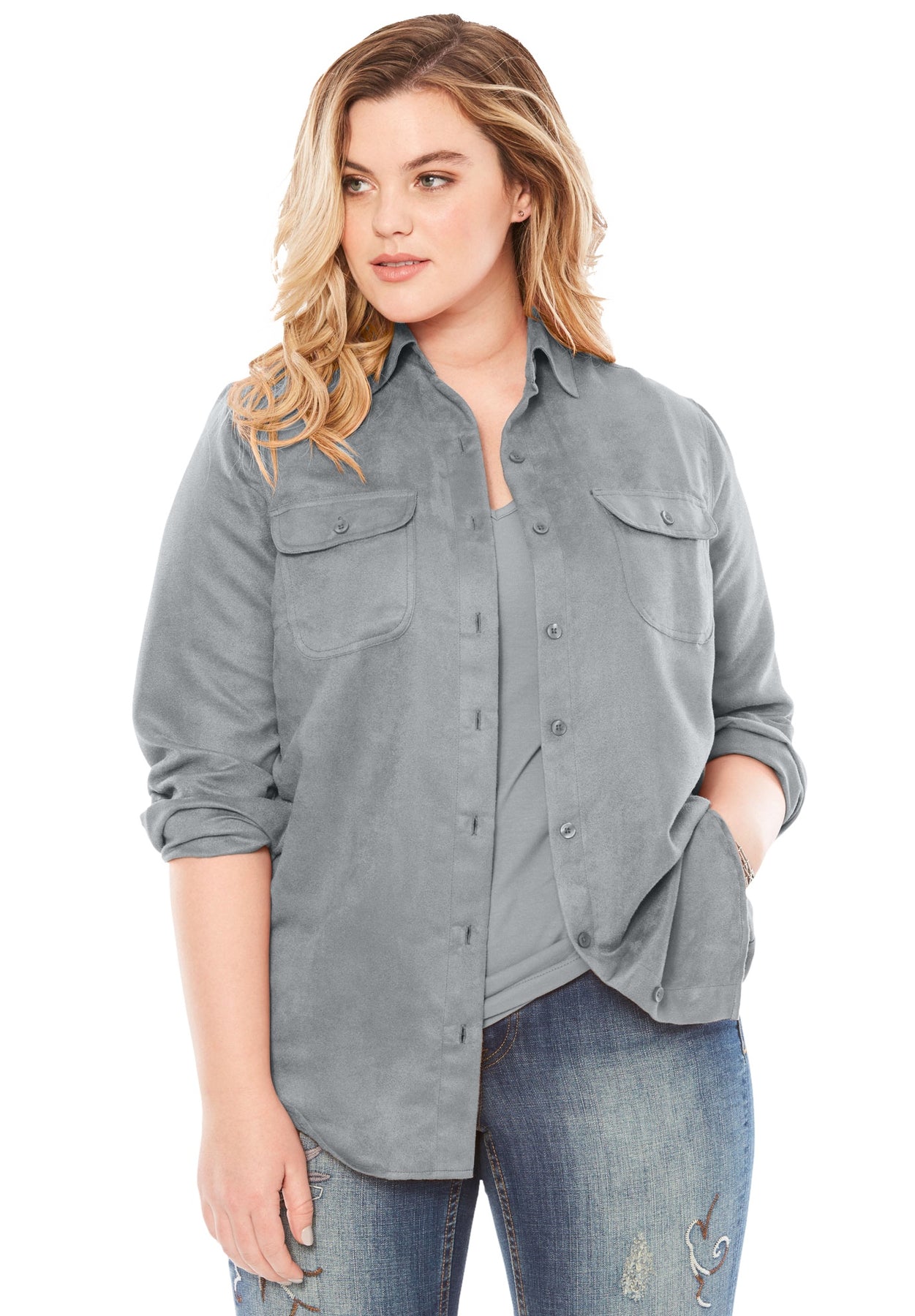 Faux Suede Button-Front Shirt | Roaman&