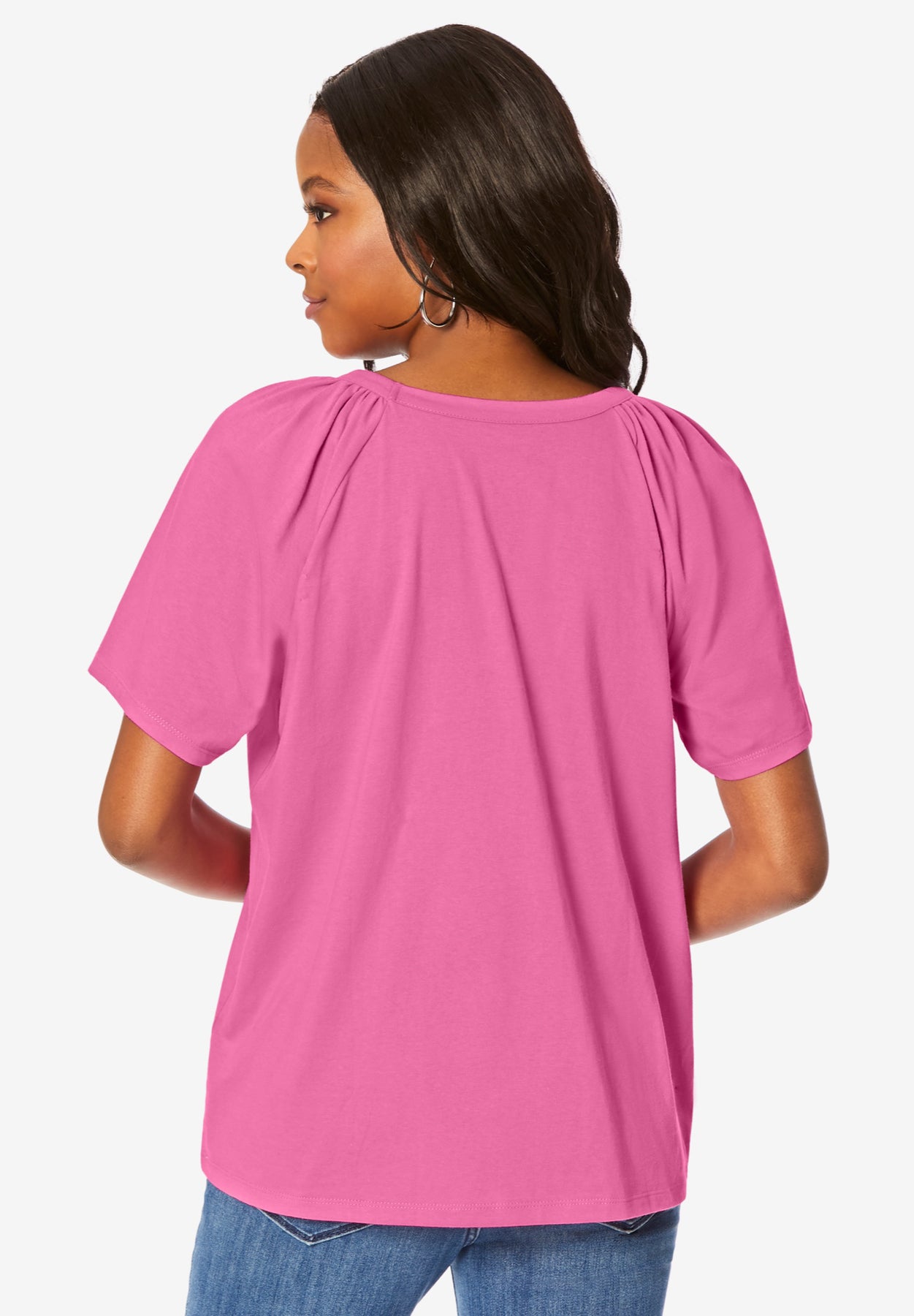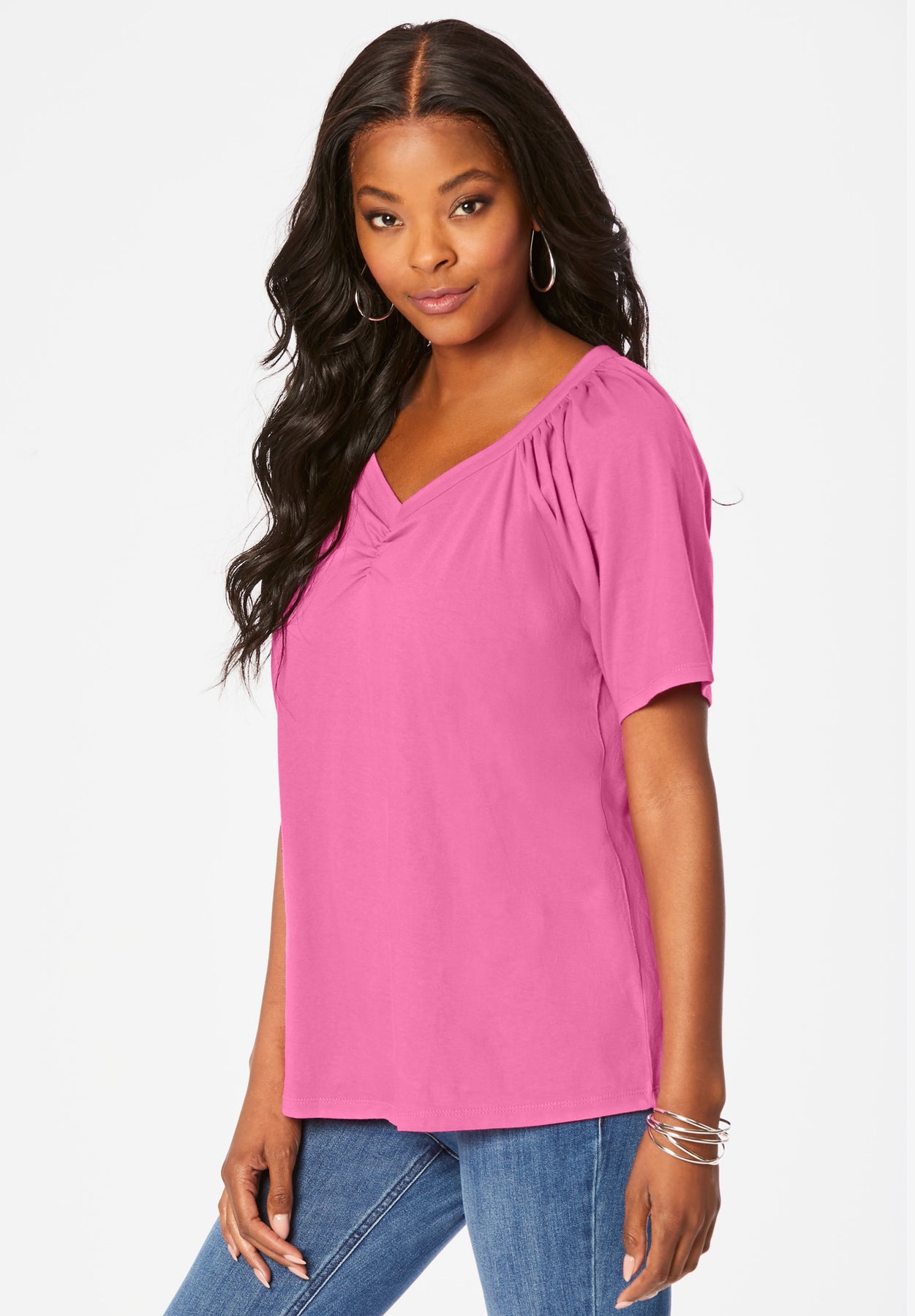 With elasticated sleeves that can be worn on or off the shoulder, this tee is a real sweetheart. Its romantic neckline and comfortable fit will make it an instant favorite.