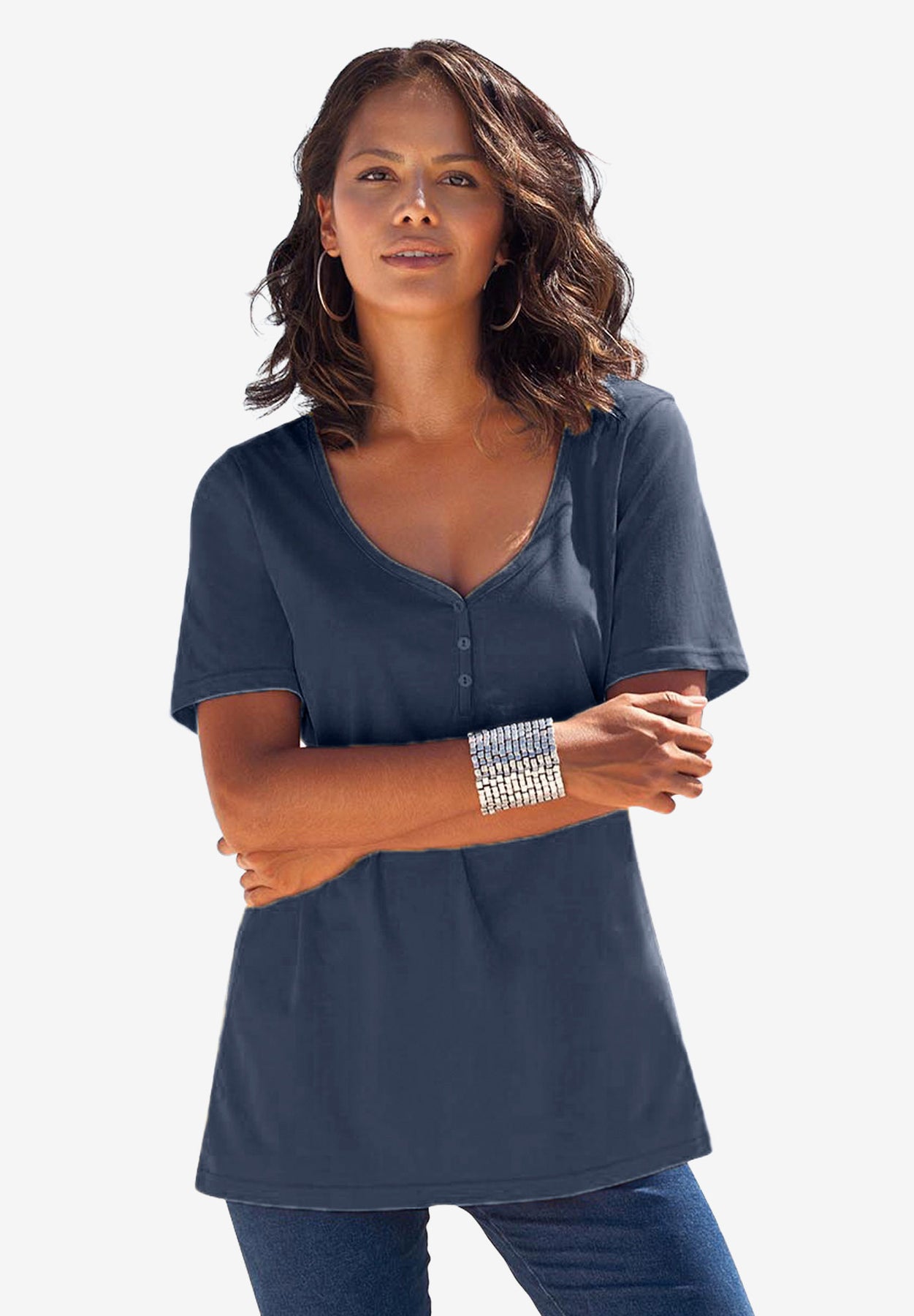 The ultimate feminine tee, with a pretty sweetheart neckline and three-button henley detail. Part of our Ultimate Collection, the tees you simply can’t live without. Every soft and stylish tee comfortably glides over curves and feels divine to wear. Made in a pure cotton knit that wears and washes beautifully, our fits are designed to flow and never cling. Look for the pretty details that make each one special.