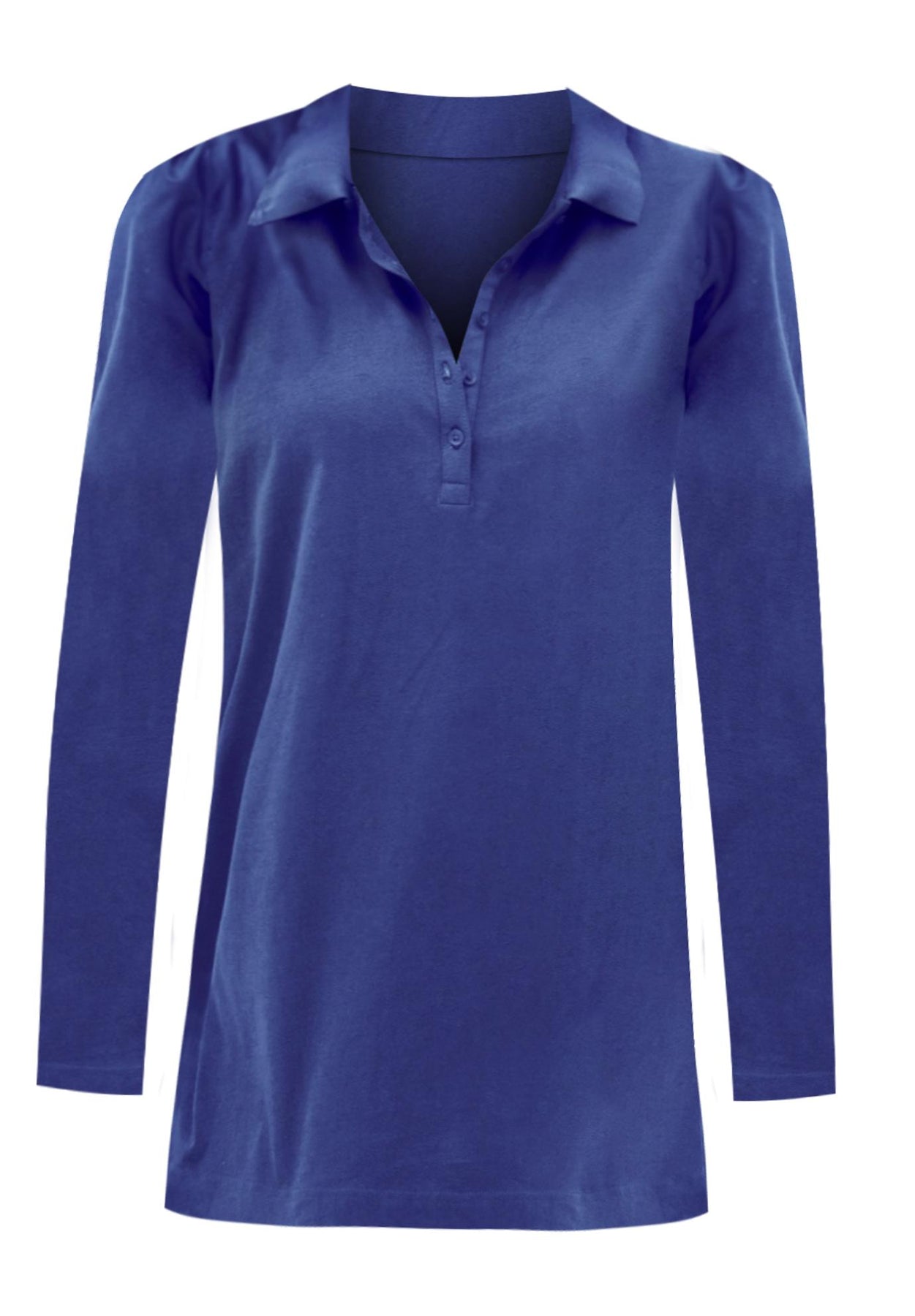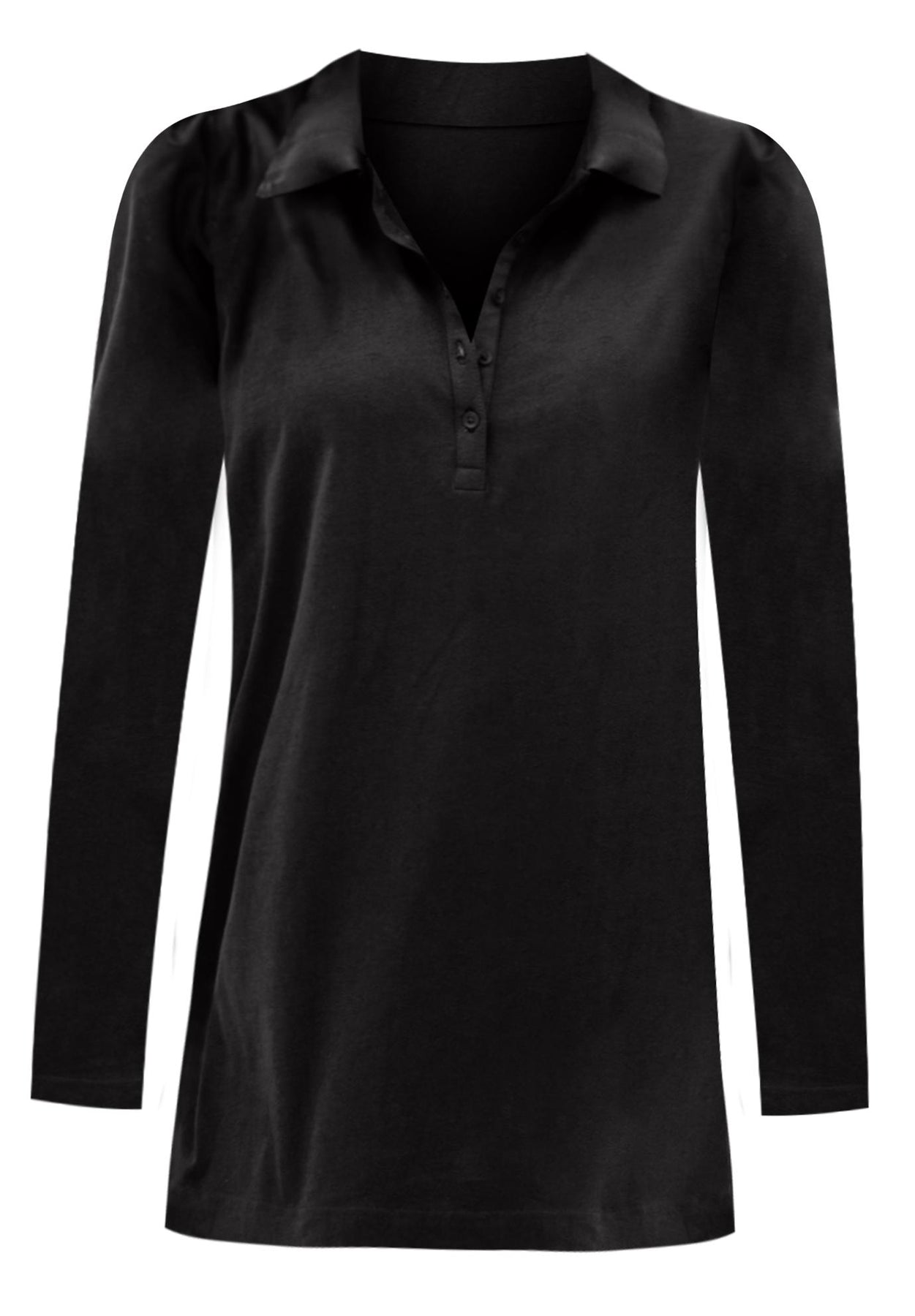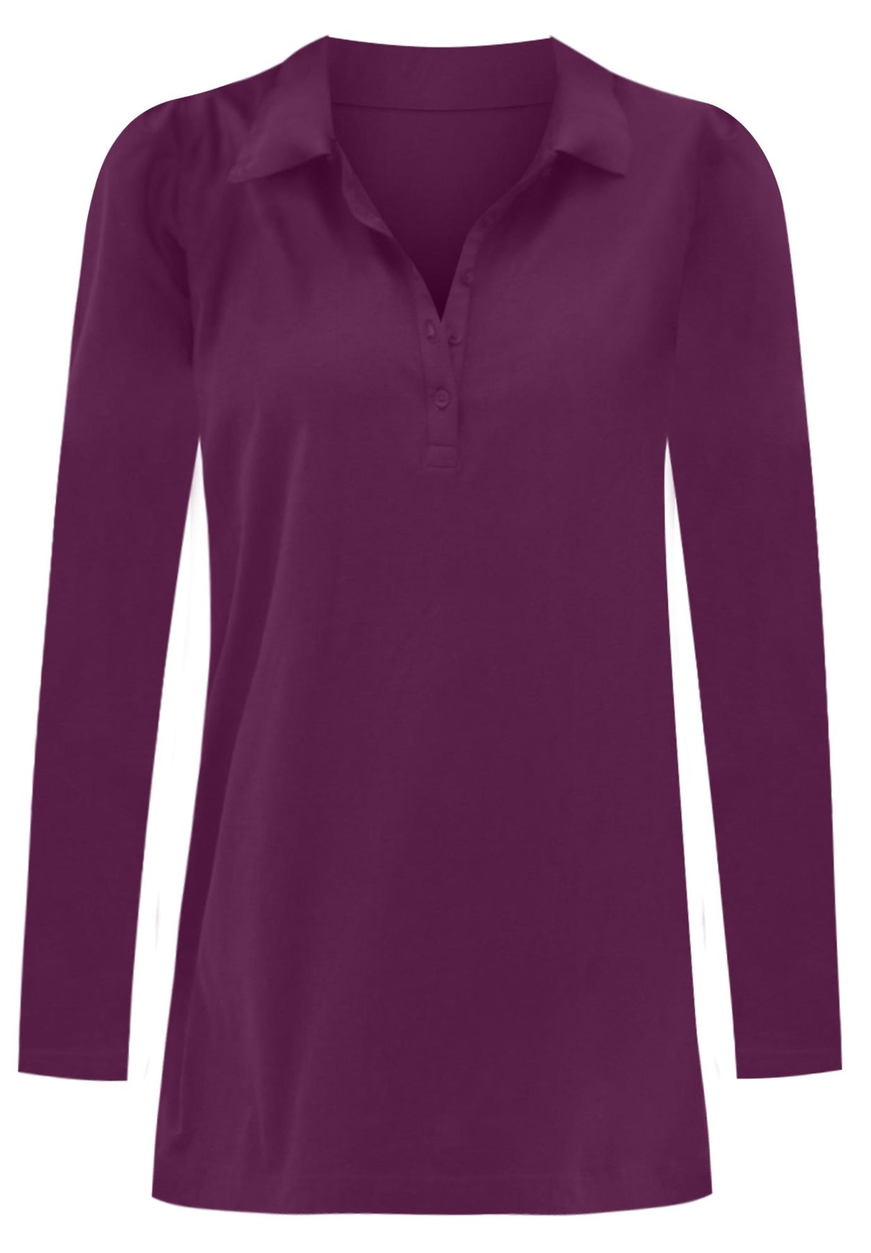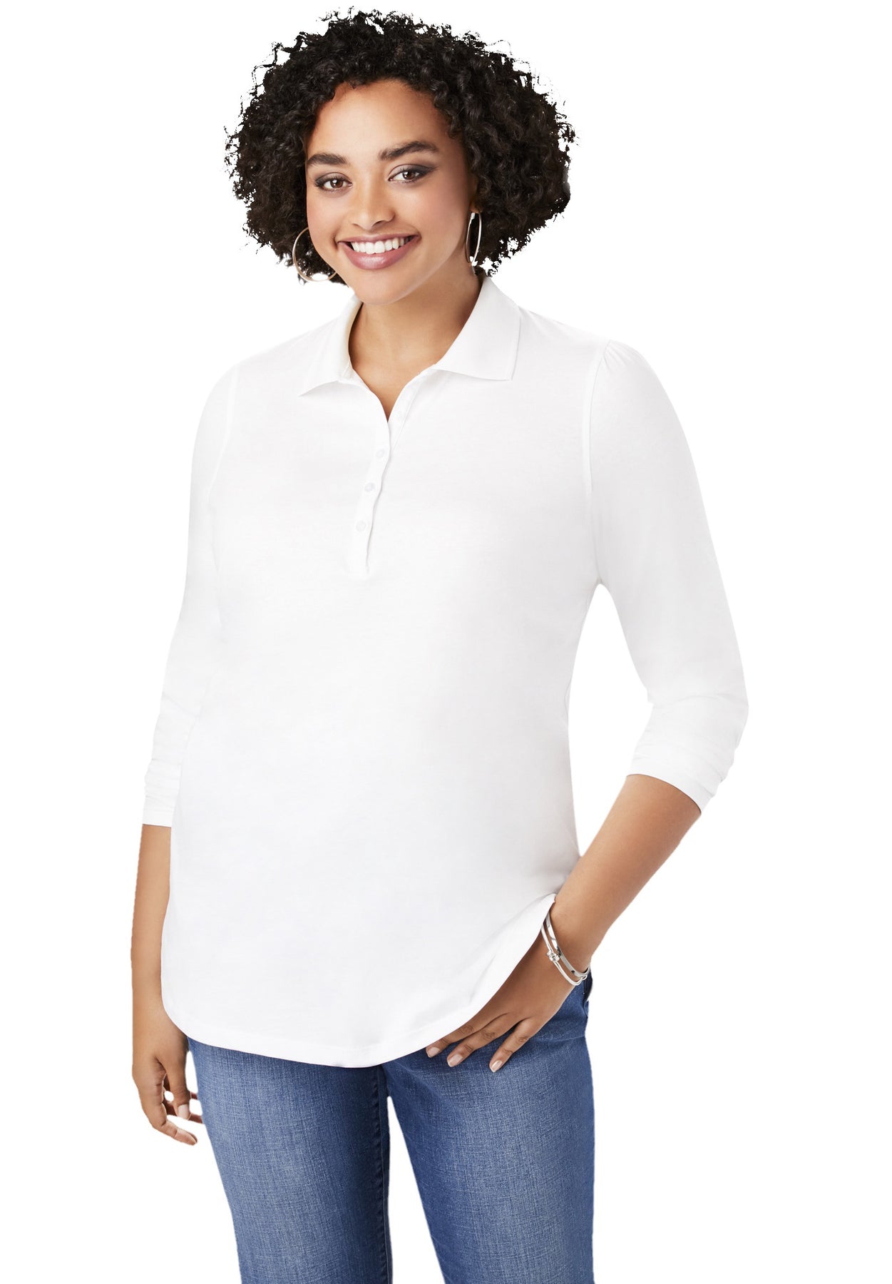This everyday polo, updated with cozy long sleeves. Slight shirring at sleeve cap.