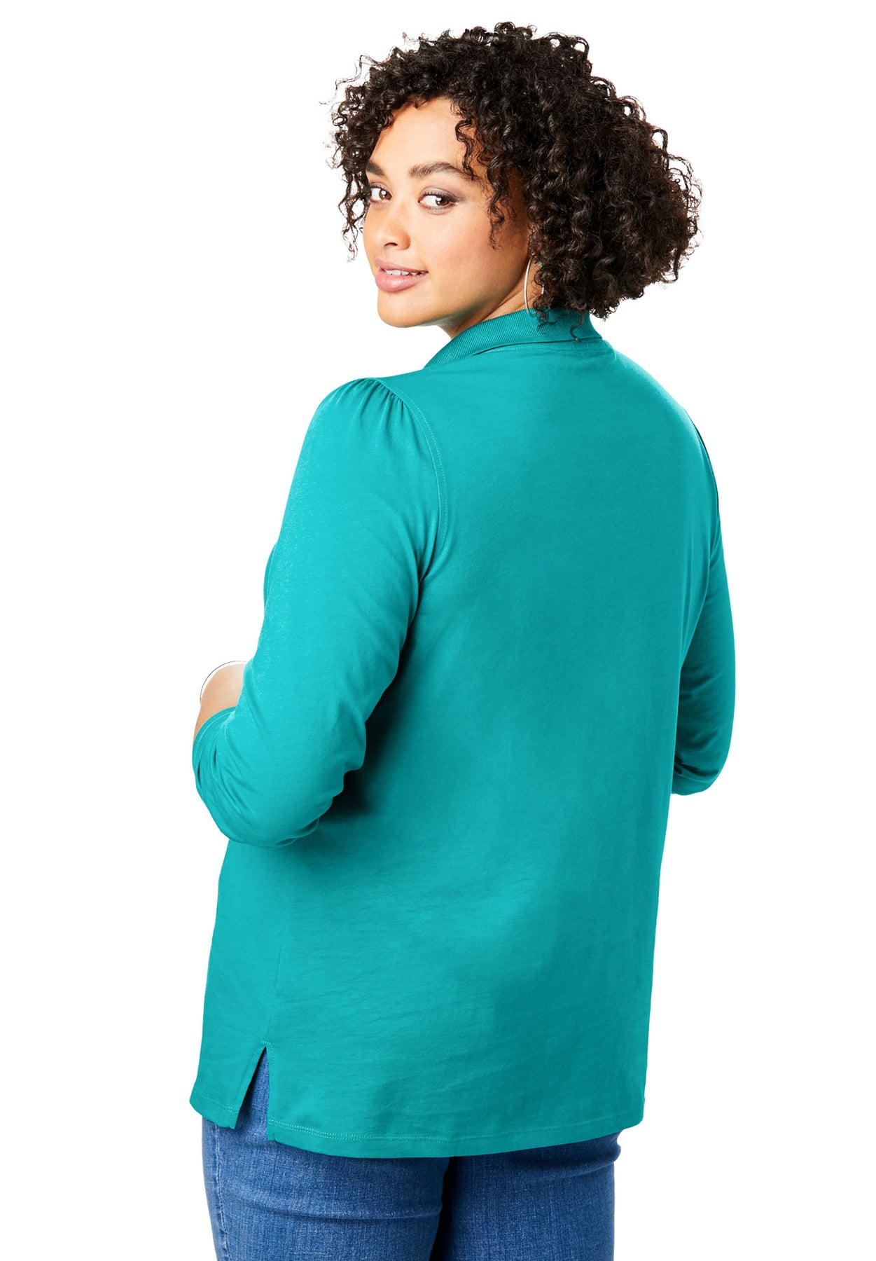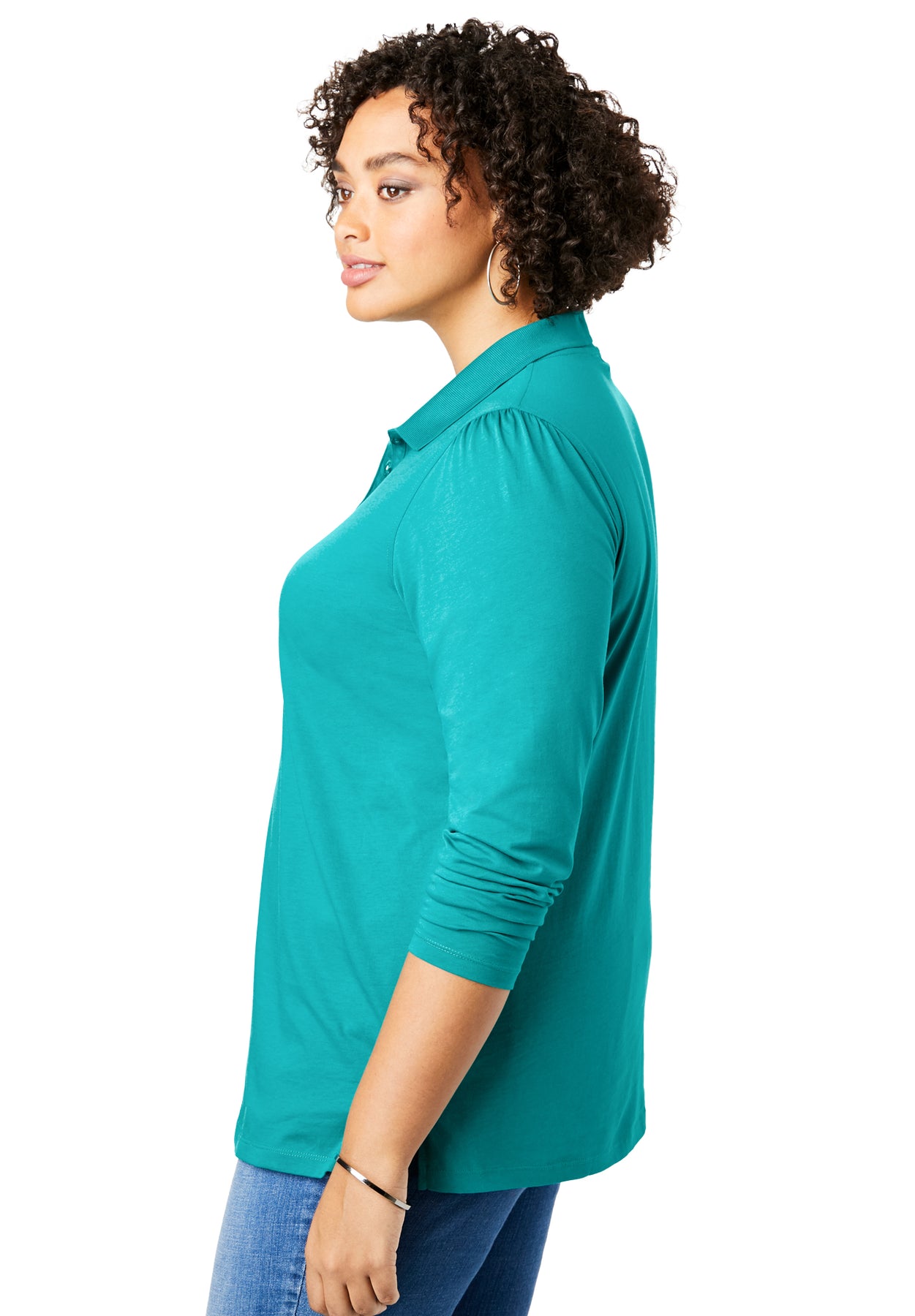 This everyday polo, updated with cozy long sleeves. Slight shirring at sleeve cap.