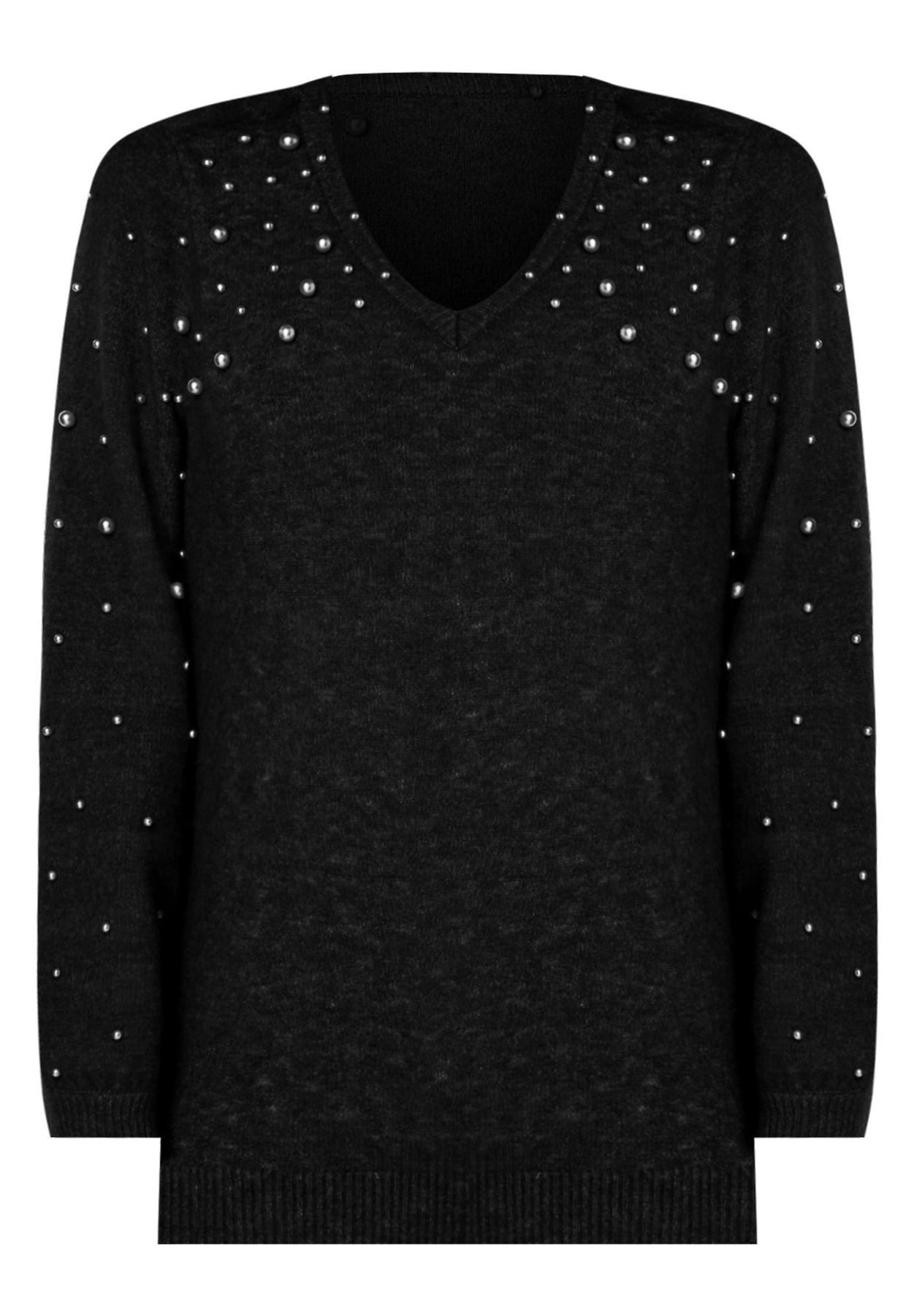 Embellished Pullover Sweater with Blouson Sleeves | Roaman&
