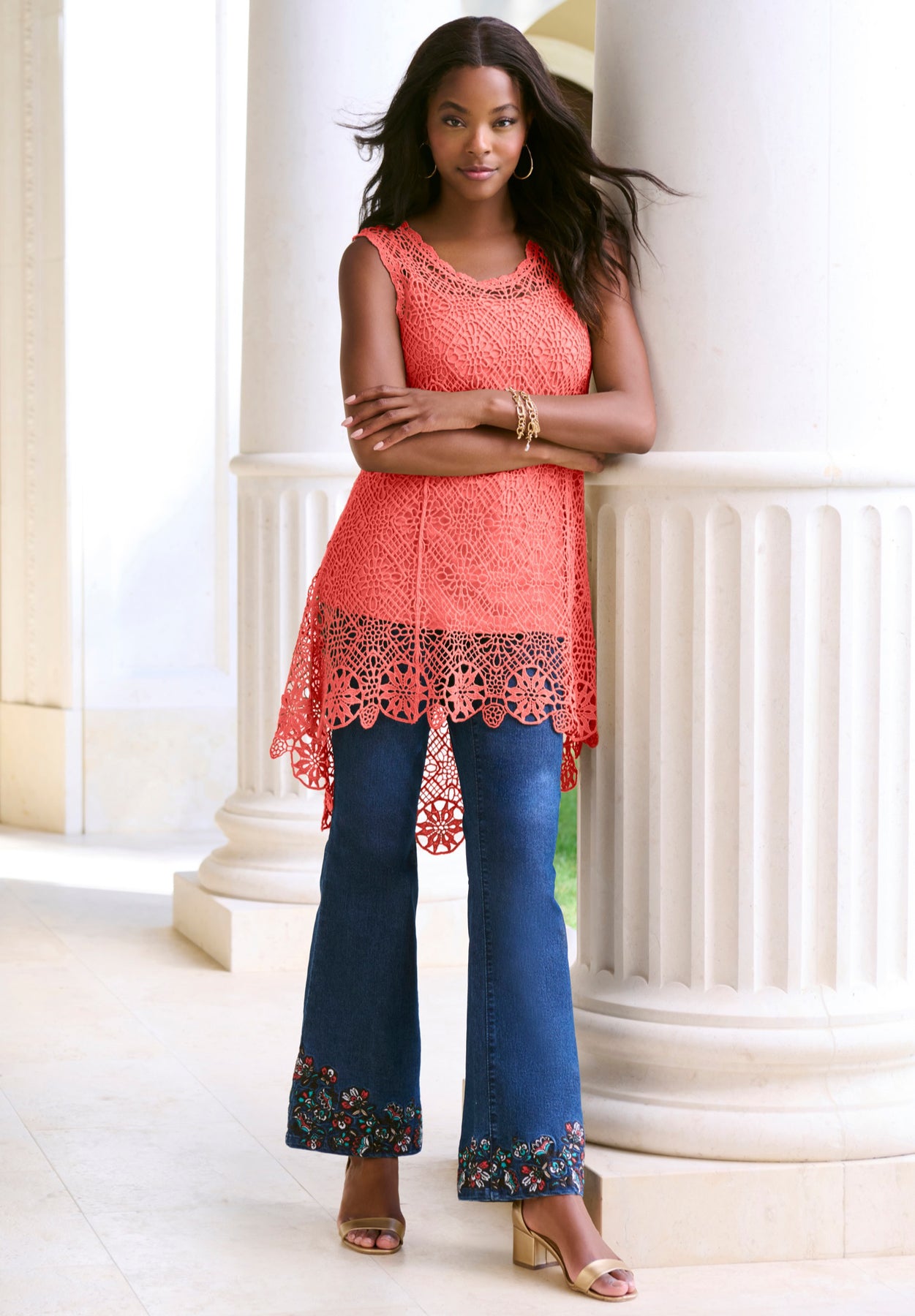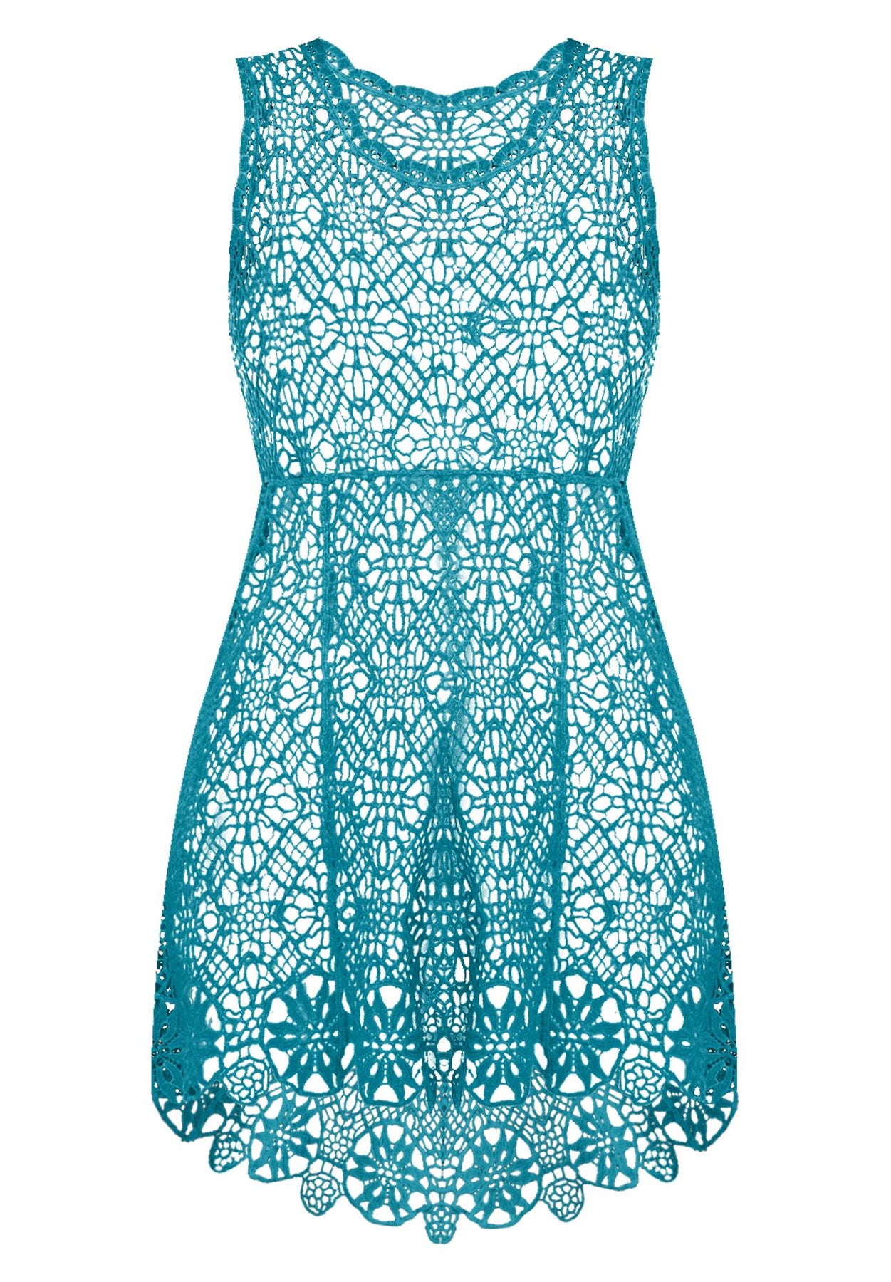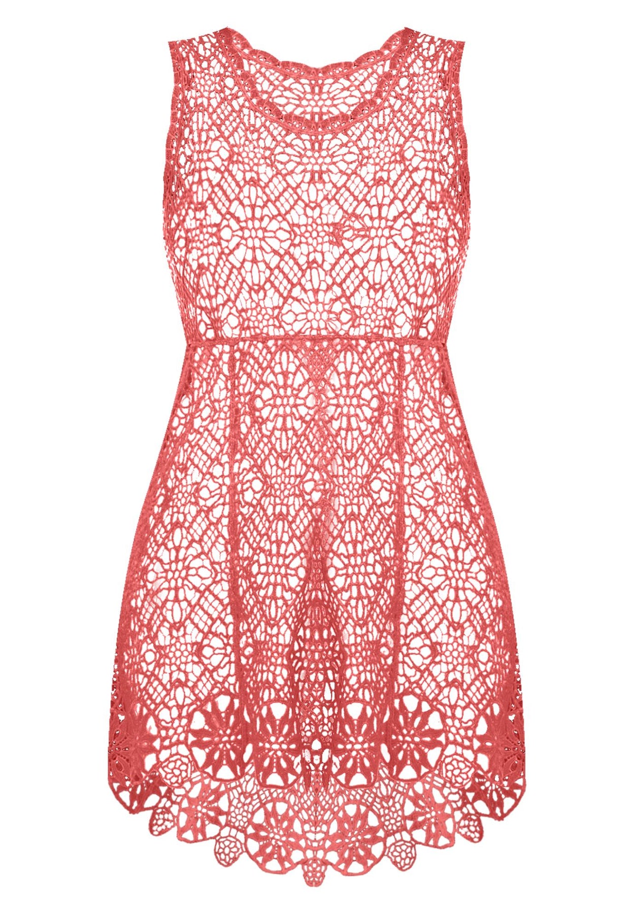 Add a boho-chic vibe to your wardrobe with this sleeveless crochet style. It is unlined so you can pair it with a matching tank underneath for the summer or layer it over a long-sleeve style as an overlay for cooler months. High-low hem.