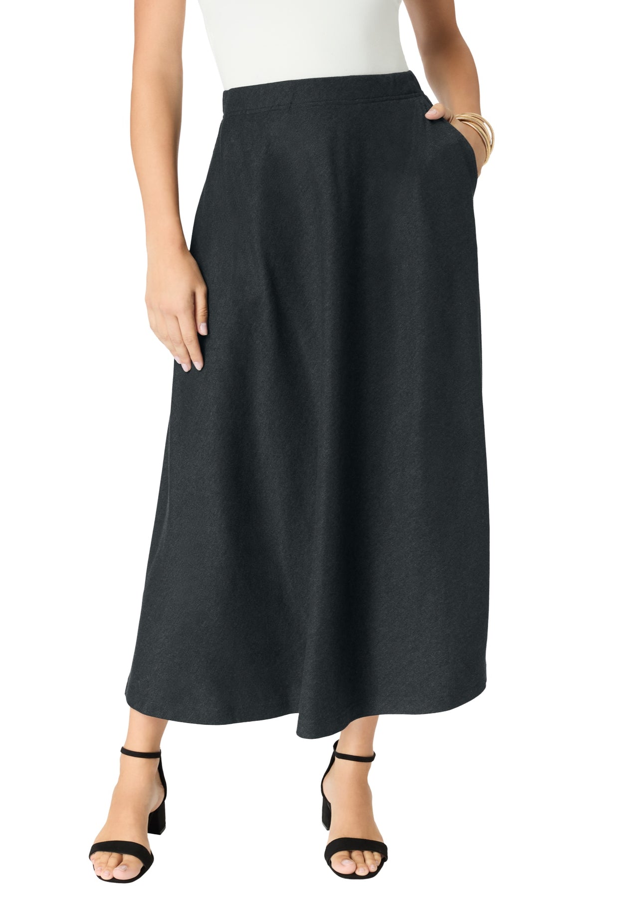 A relaxed fit and easy pull-on design makes this skirt style a breeze to wear. Elastic waist, side pockets.