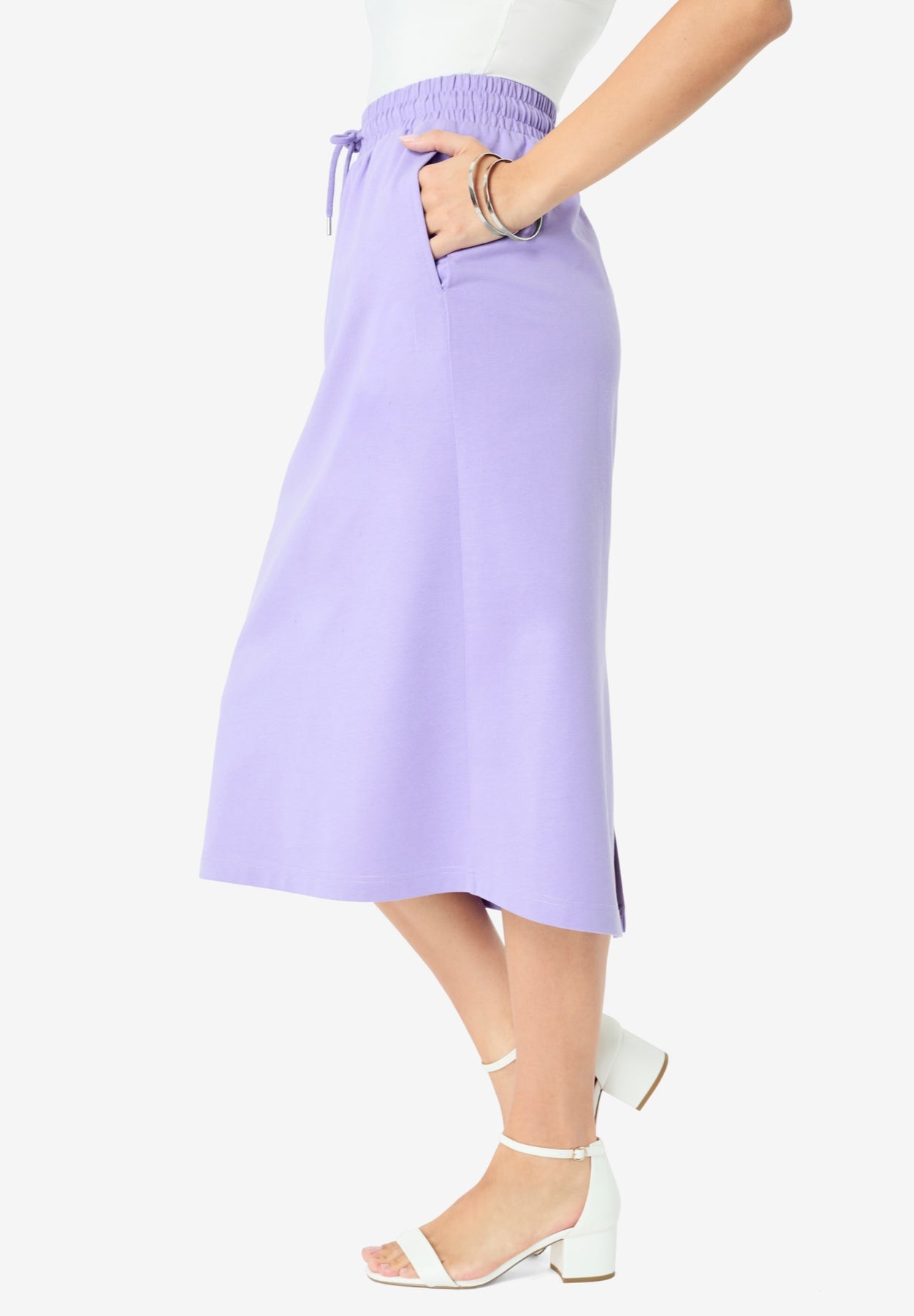 This pull-on skirt adds a flowy style to your everyday wardrobe. Style it with oversized tunics and sweaters for a casual and comfortable look for running errands or getting together with friends. Elasticized waistband. Functional drawstring.