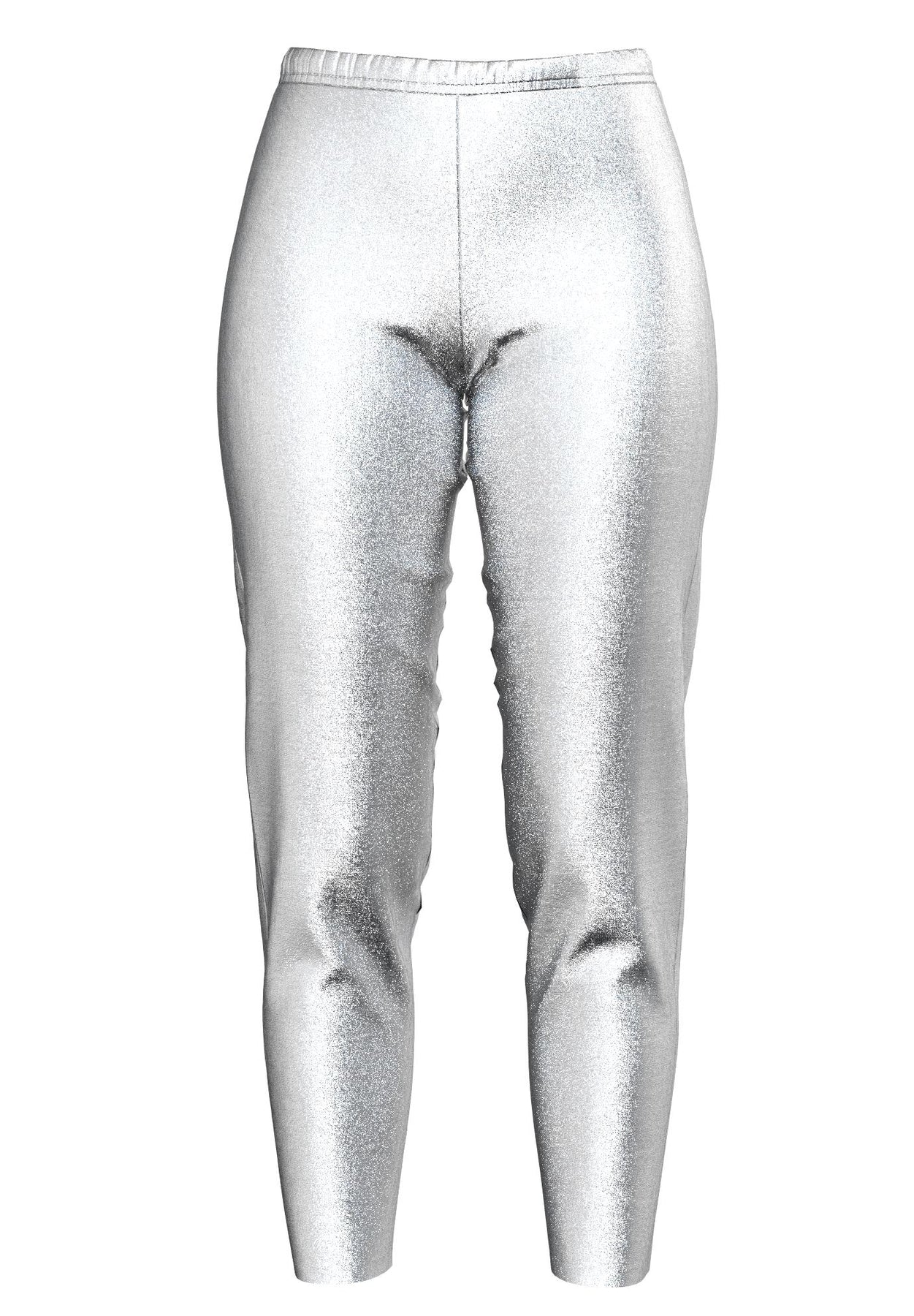These metallic leggings are anything but basic with pull-on styling and an easy, tapered leg. Elasticized waist.
