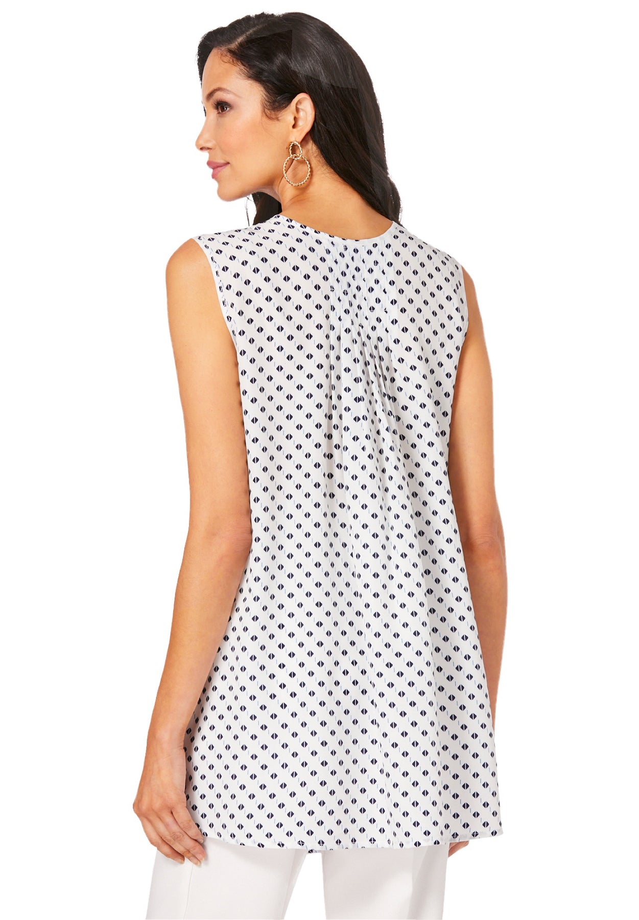 This swingy top is perfect for warm weather, or under a cute cardi on cooler days. Scoop neckline with pleated button-front. A-line silhouette.