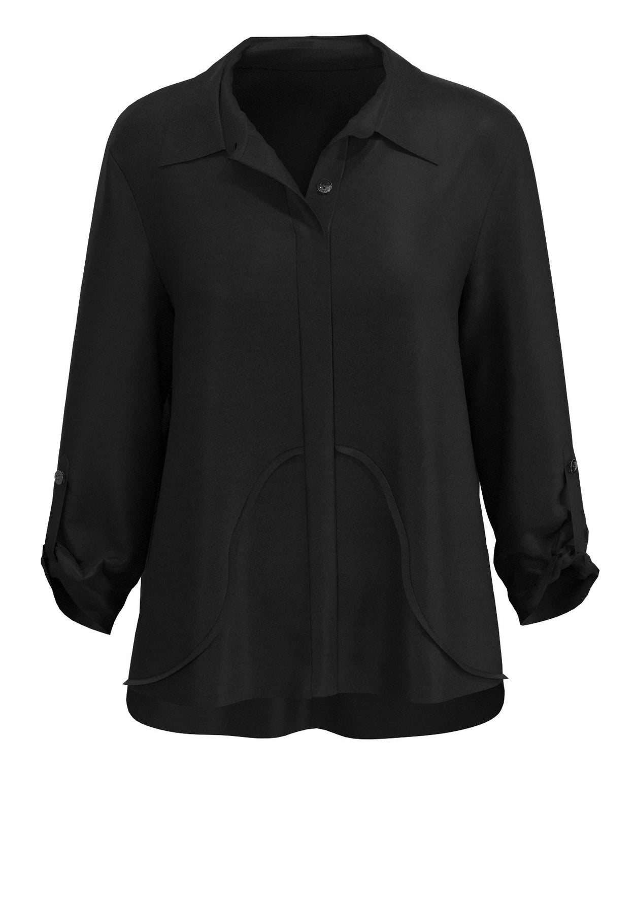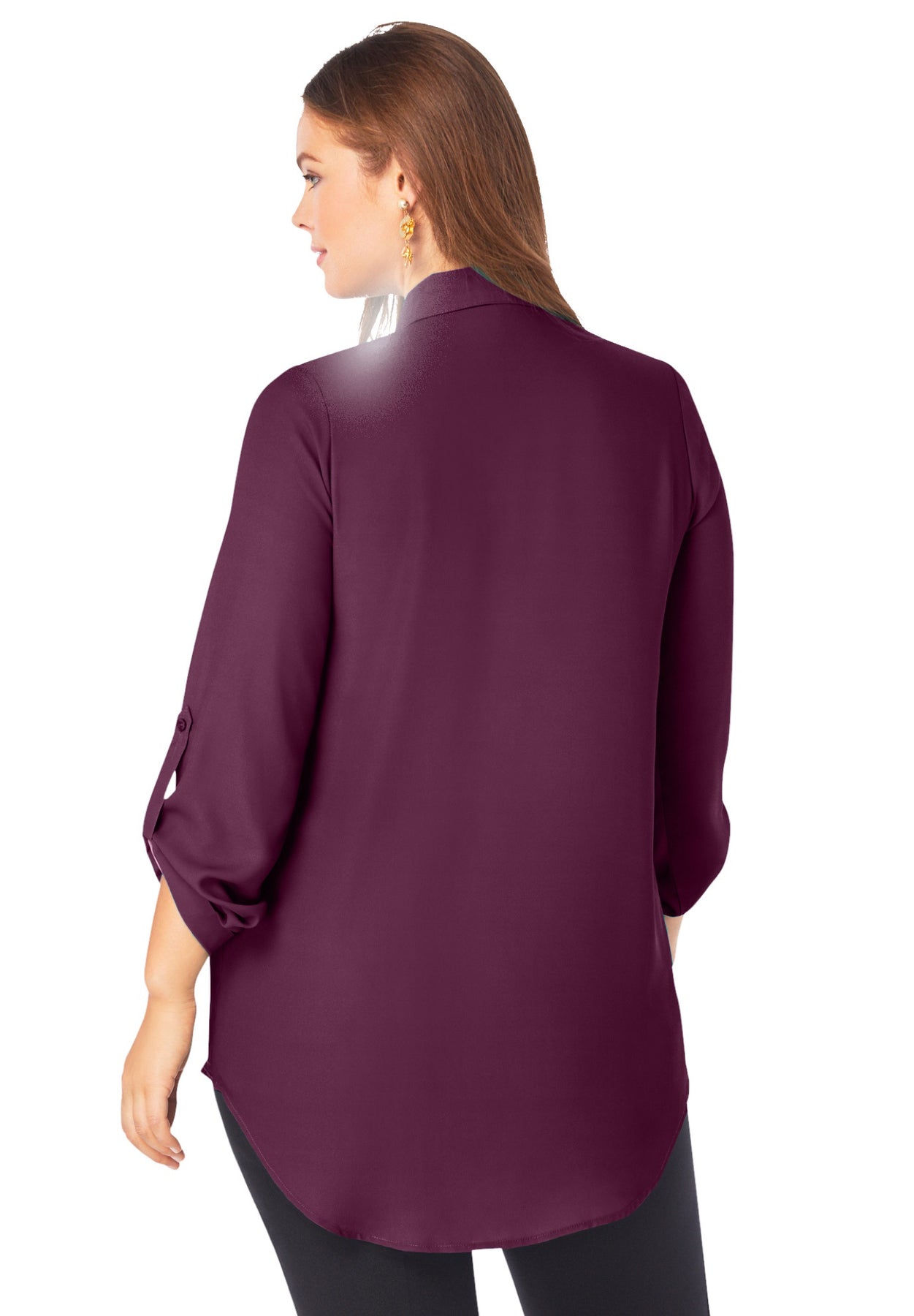 A pretty high-low hem and gorgeous overlay make this long tunic your new go-to. Roll-tab sleeves adjust to three-quarter length.