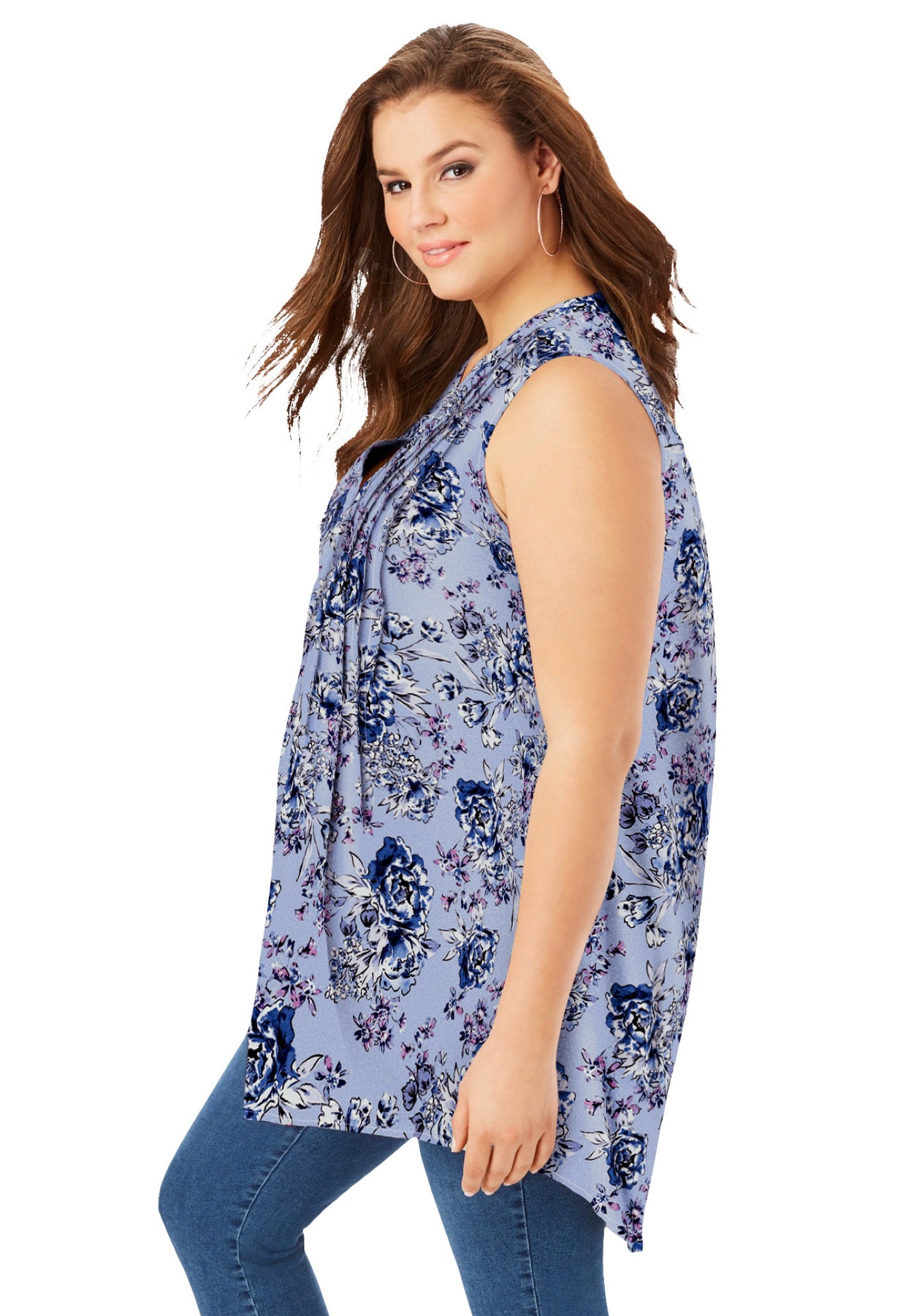 A pretty sleeveless shirt for stepping up your everyday look with a feminine Y-neck and button-front design. Shirttail hem.