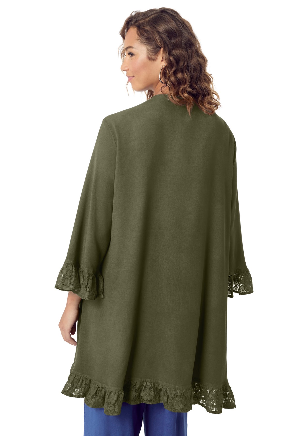 Ruffle Trimmed Acid Wash Kimono | Roaman&