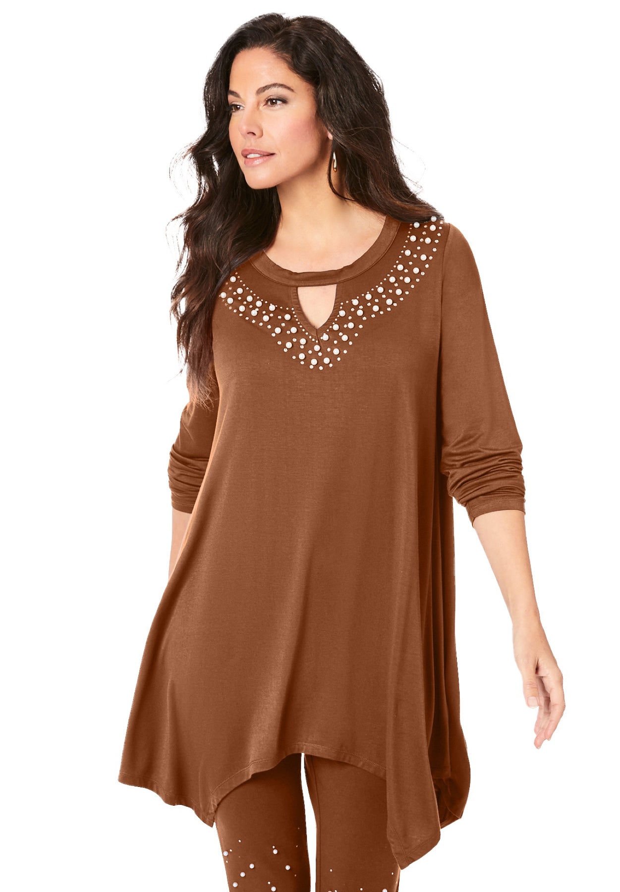 Defined by its alluring peek-a-boo neckline and sleek silhouette, this tunic is perfect for any occasion.