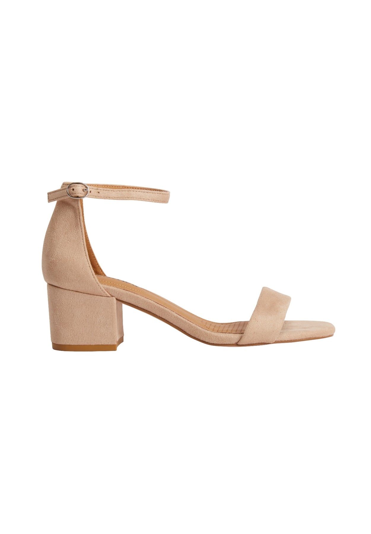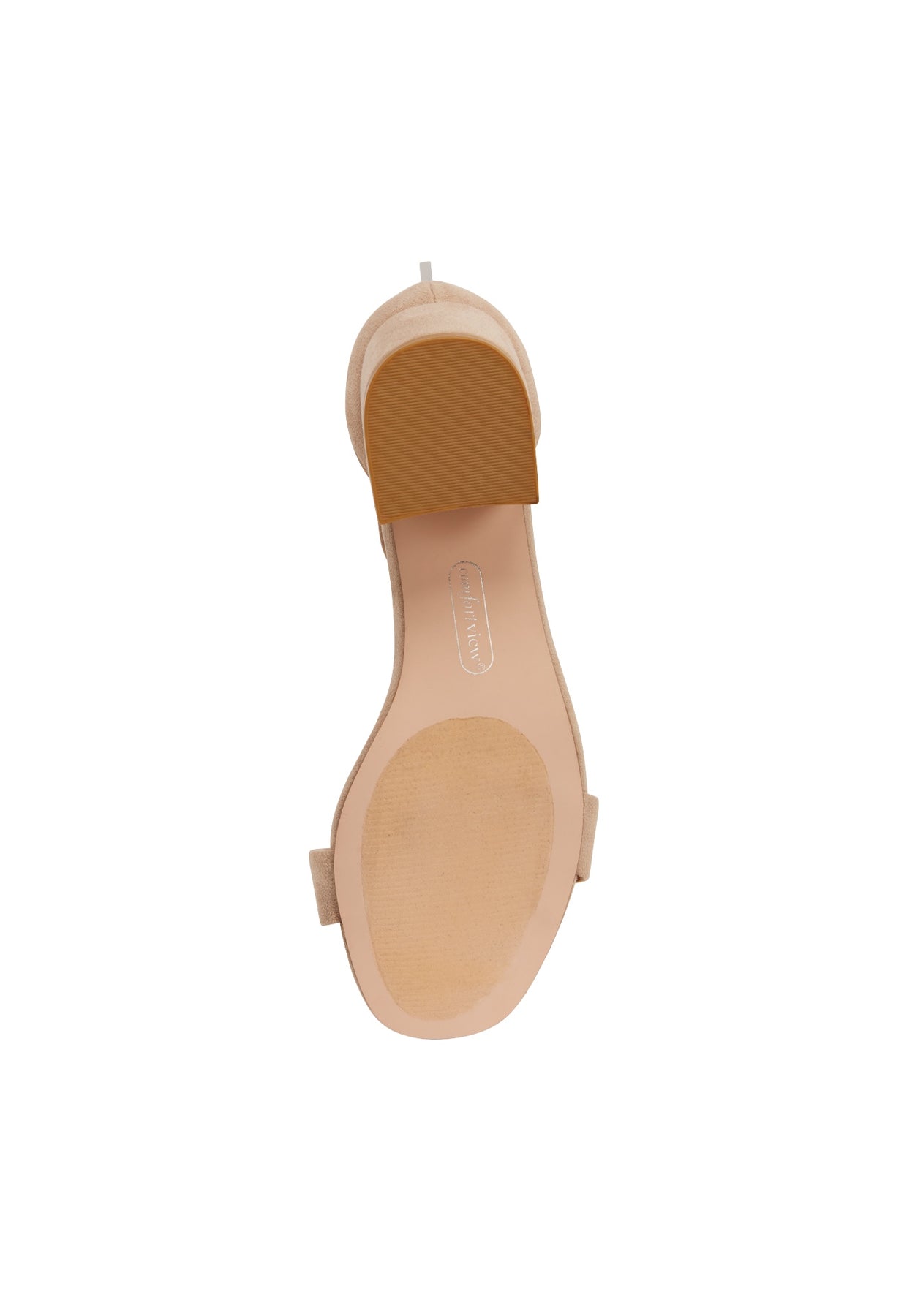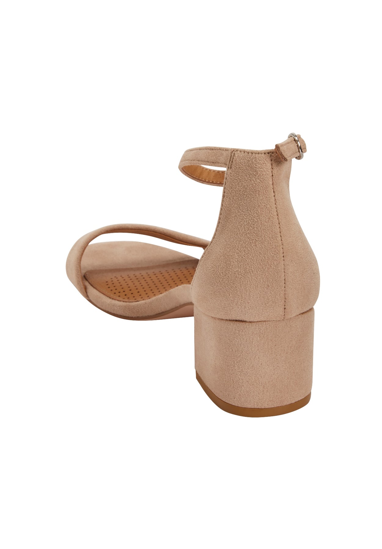 The slender ankle strap and sumptuous suede-like or cool canvas upper define this feminine heel and make it your new go-to for spring-into-summer style.