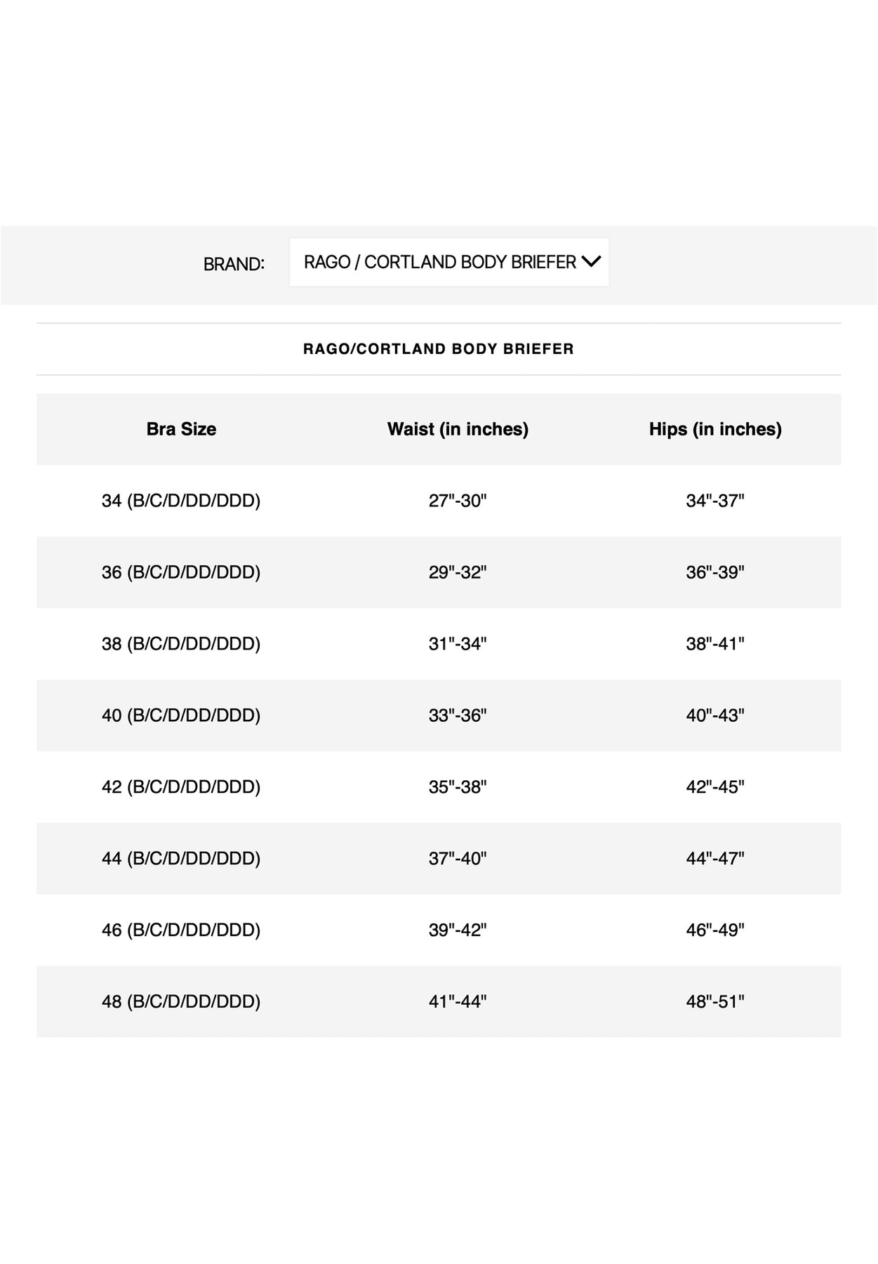 | SIZES | BUST | WAIST | HIPS | |||