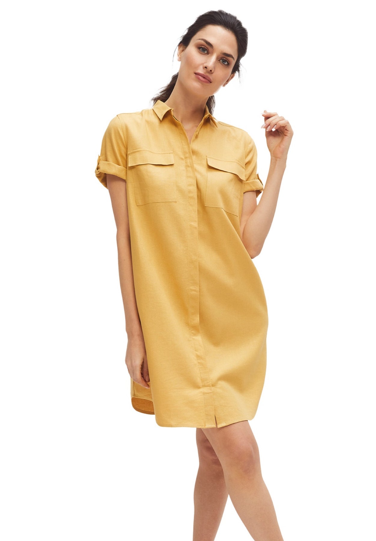 I love this dress Its so comfortable to wear The fit was perfect the length was perfect Just remember its linen blend so it can be hot on summer days Great for fall weather It may need touch up with an iron after washing