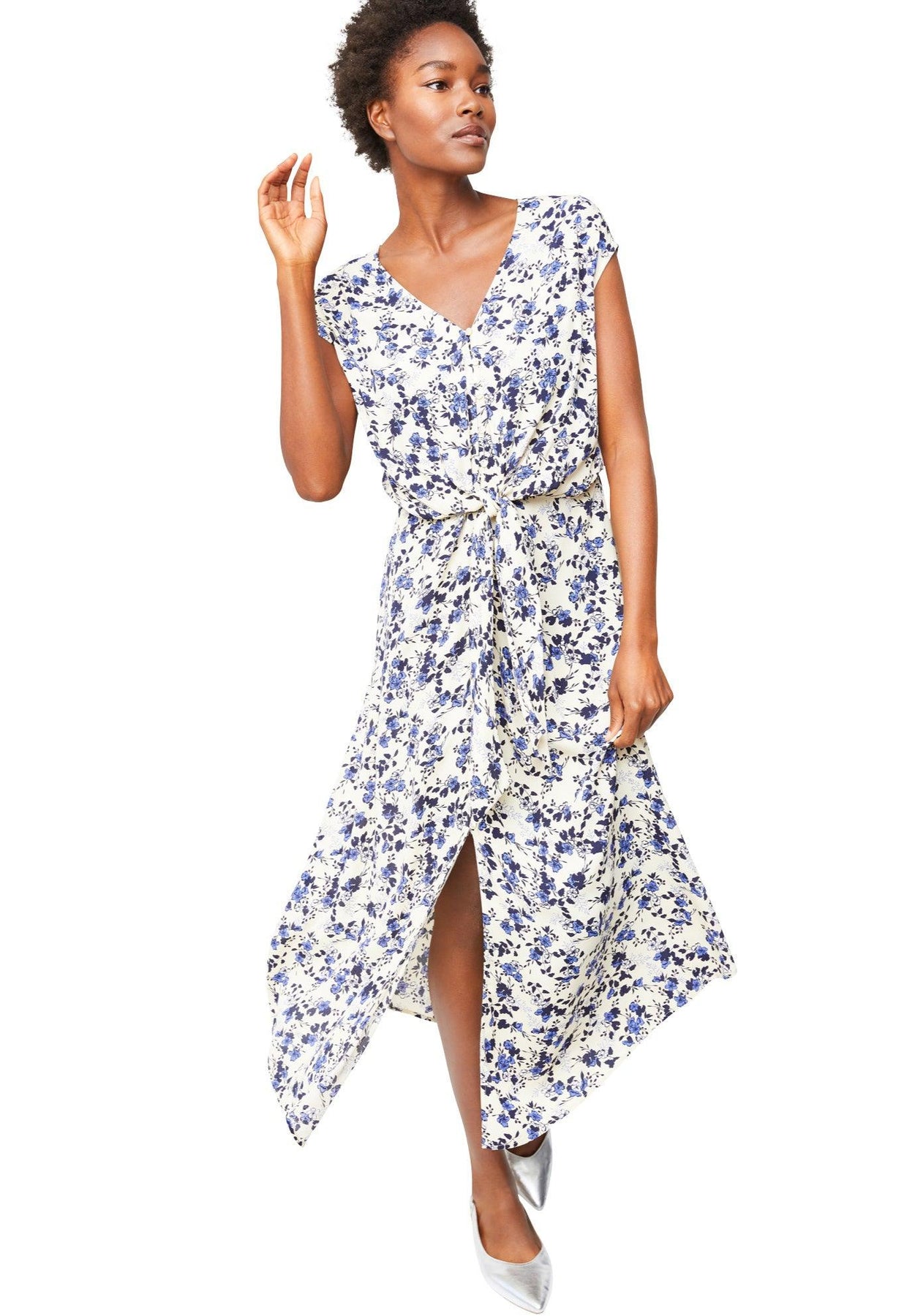 Up the femme factor in button-front maxi dress! A chic tie-front adds flair & definition to this one-piece wonder. Offset the look with sporty sneakers or dress it up for Mon-Fri with our everyday blazer.
