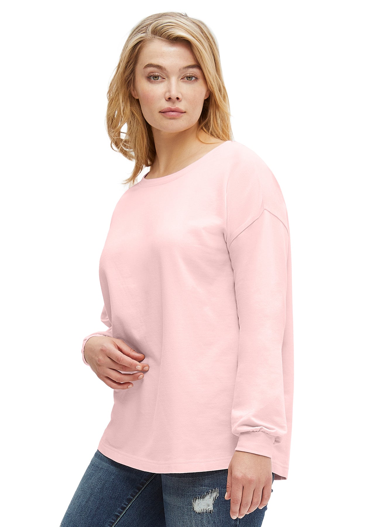 • Long sleeves with slight blouson & soft shirring at ribbed sleeve cuff