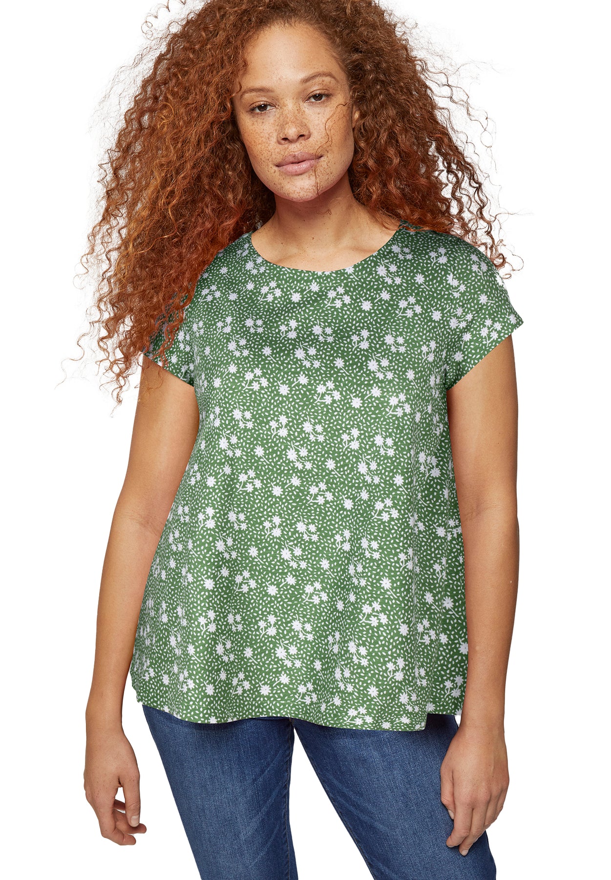This breezy cotton knit tee is an easy style favorite. The timeless trapeze silhouette, scoop neck and cap sleeves are fit to flatter every figure. An inverted back pleat gives it a relaxed feel that's perfect with jeans and shorts.