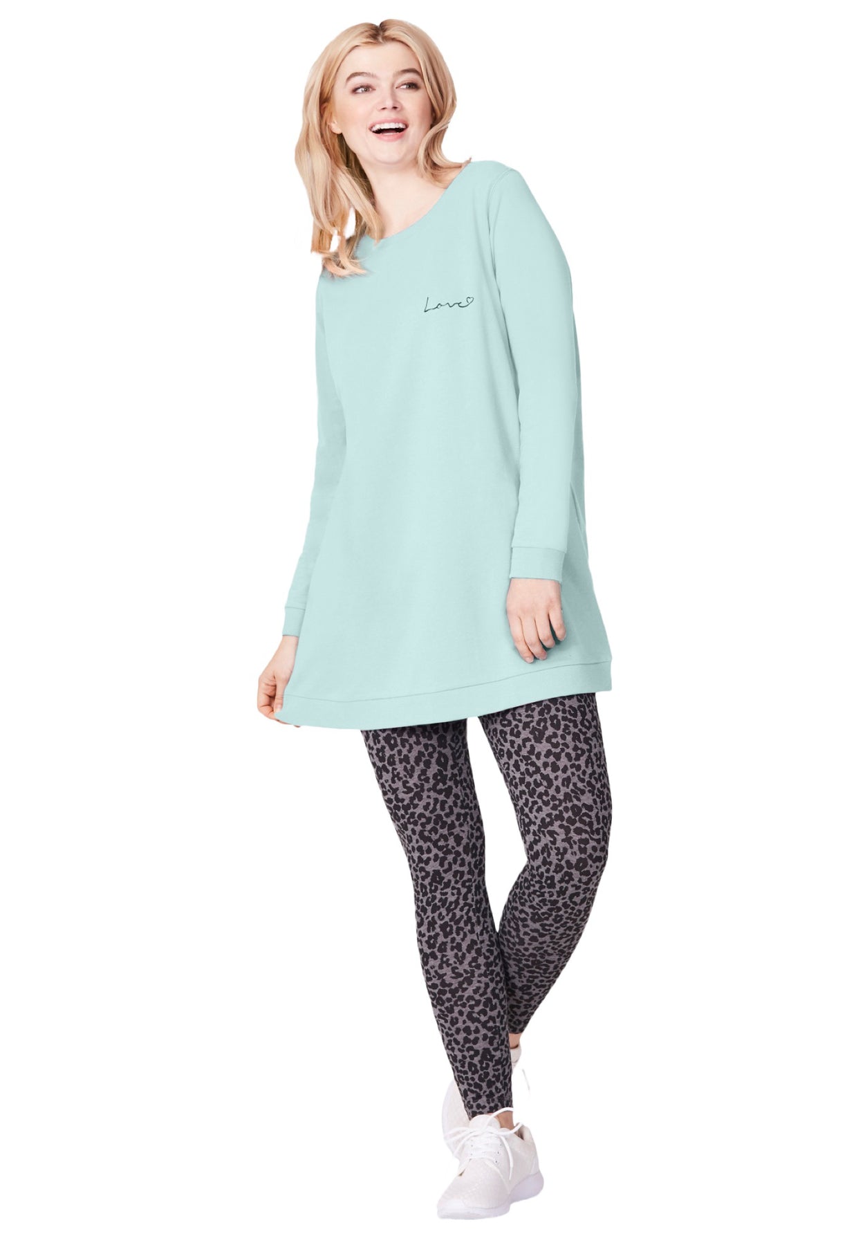 Relax in style with our sweatshirt tunic. Crafted in soft cotton French terry, the design features a ribbed scoop neckline, relaxed silhouette, long sleeves with ribbed cuffs and a ‘Love’ screenprint on the left chest. Pair with sneakers and leggings for a look you’ll love.