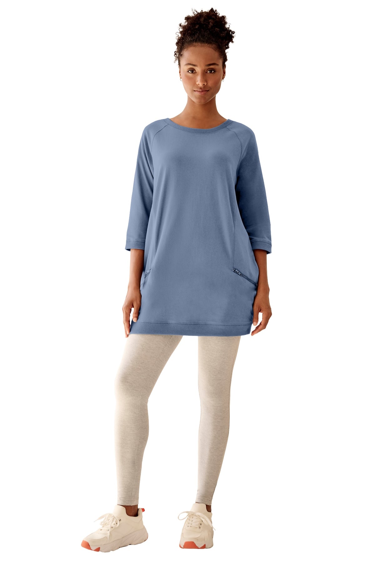 A seasonless tunic with great features! Made from lightweight baby French terry with incredible softness and comfort. Perfect to pair with our bestselling leggings or your favorite skinny jeans.